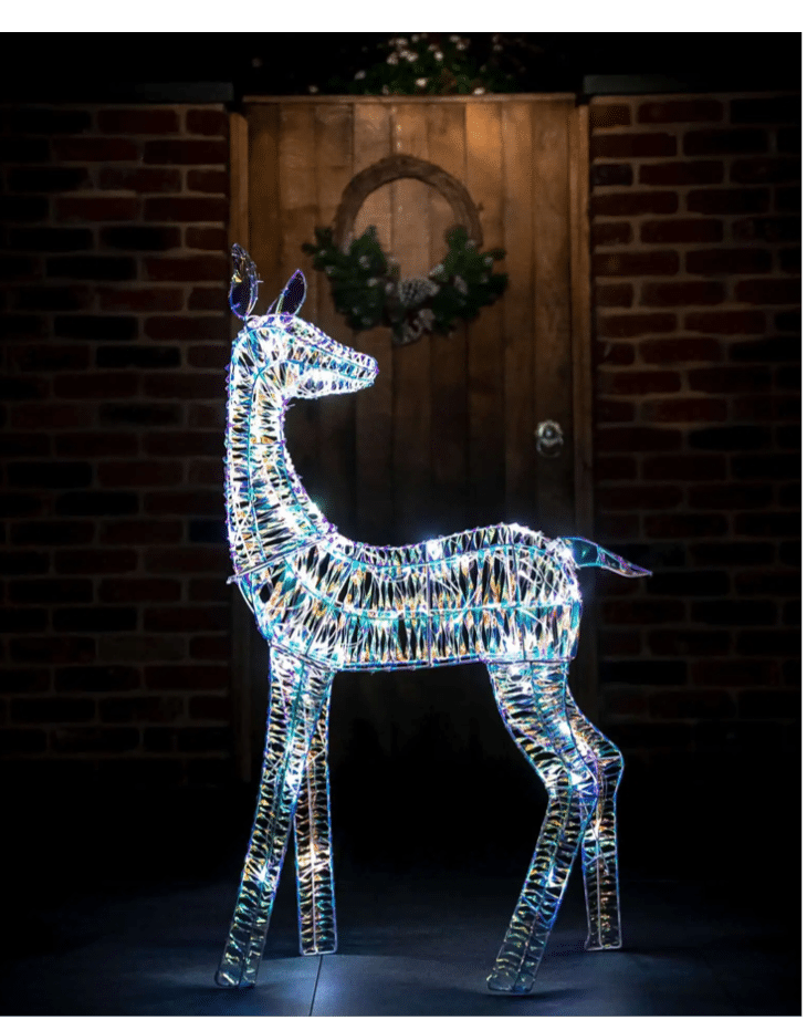 Top Picks: Iridescent Reindeer with 70 White LED Lights, Reindeer Infinity LED Christmas Lights, 6ft Frosted Teardrop Garland, 56cm Faux Oakham Jute Wreath Large