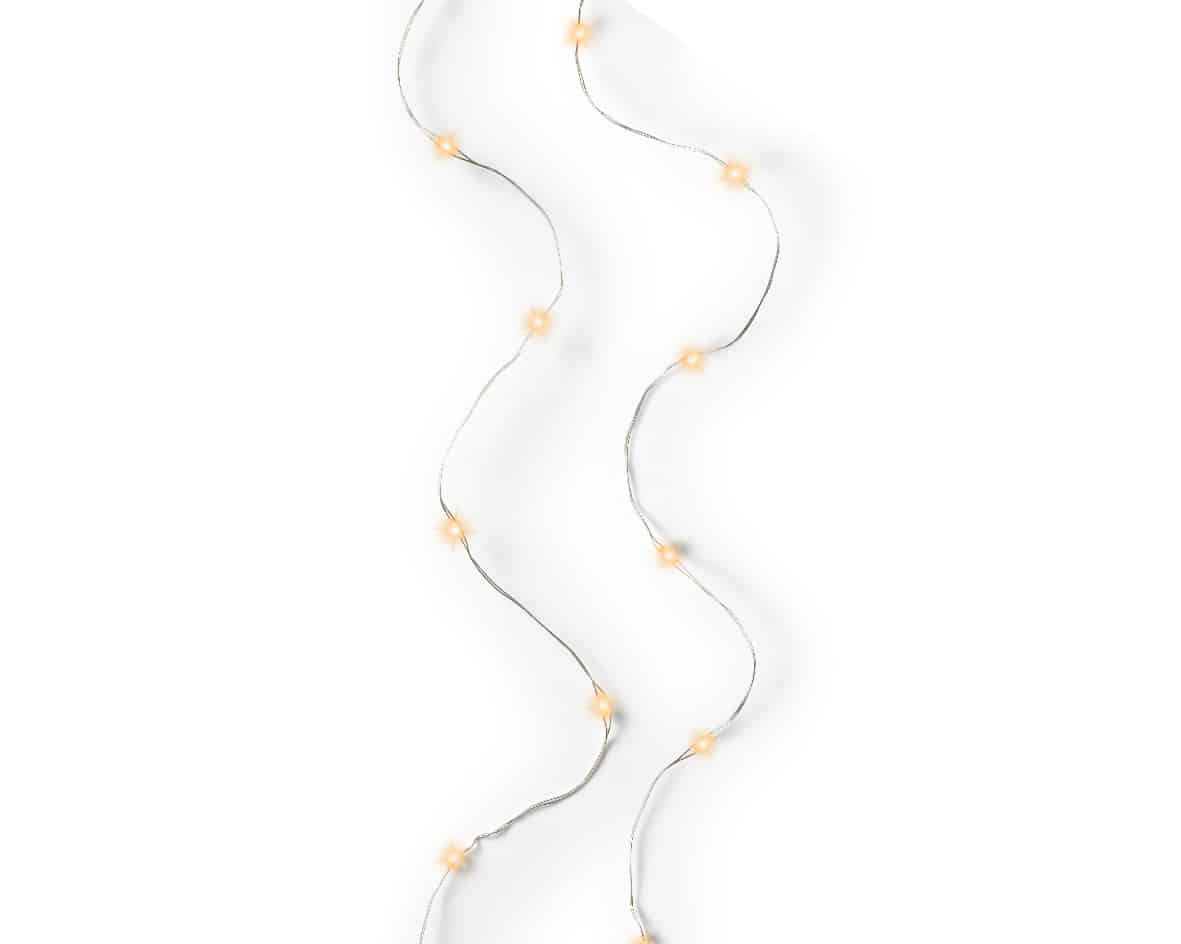 Bring festive warmth to your home with the 100 Micro LED Classic Warm String Battery Christmas Lights. This compact set is ideal for adding sparkle to shelves, mantels, or Christmas table decoration. The 100 Classic warm micro LEDs create a gentle, cosy light. Each bulb is placed along a fine silver wire that blends effortlessly with any background. The soft glow adds warmth to your home without being too bright.