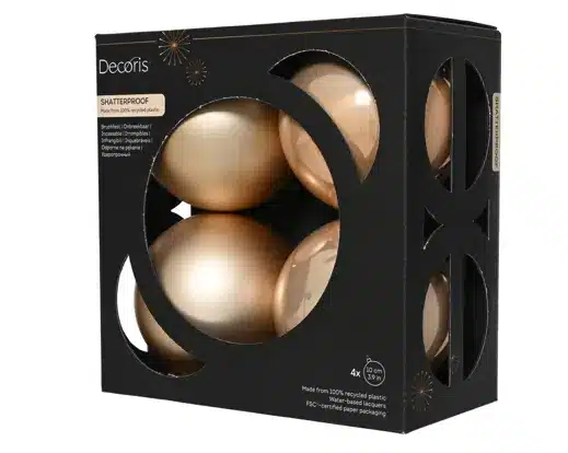 Transitioning from traditional to sustainable decorations doesn’t mean compromising on style. In fact, with this elegant mix of shiny and matt finishes, you can create a look that feels modern, luxurious, and effortlessly festive. Whether your theme is minimalist and neutral or rich and colourful, these baubles blend in beautifully — or stand out just enough to make a statement.