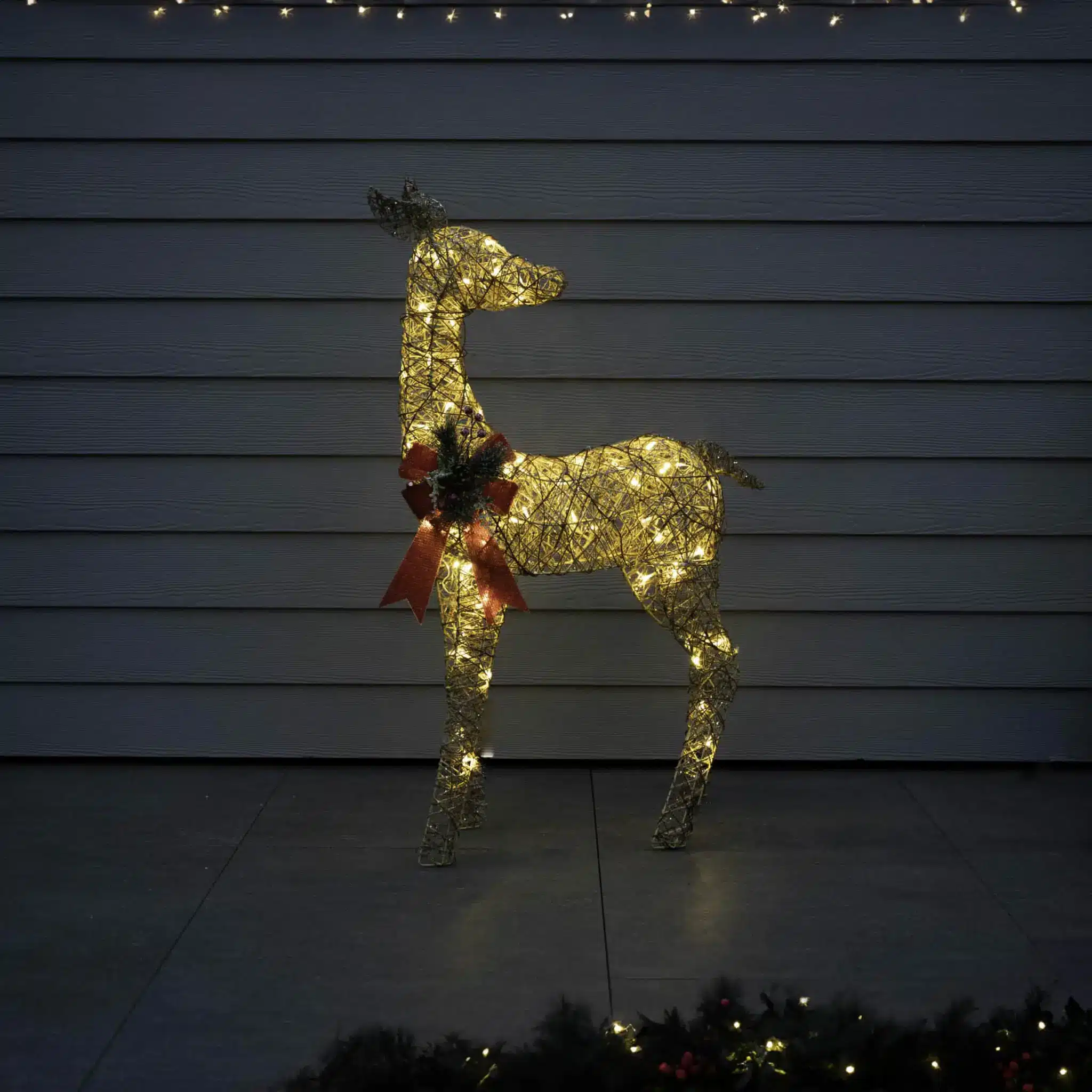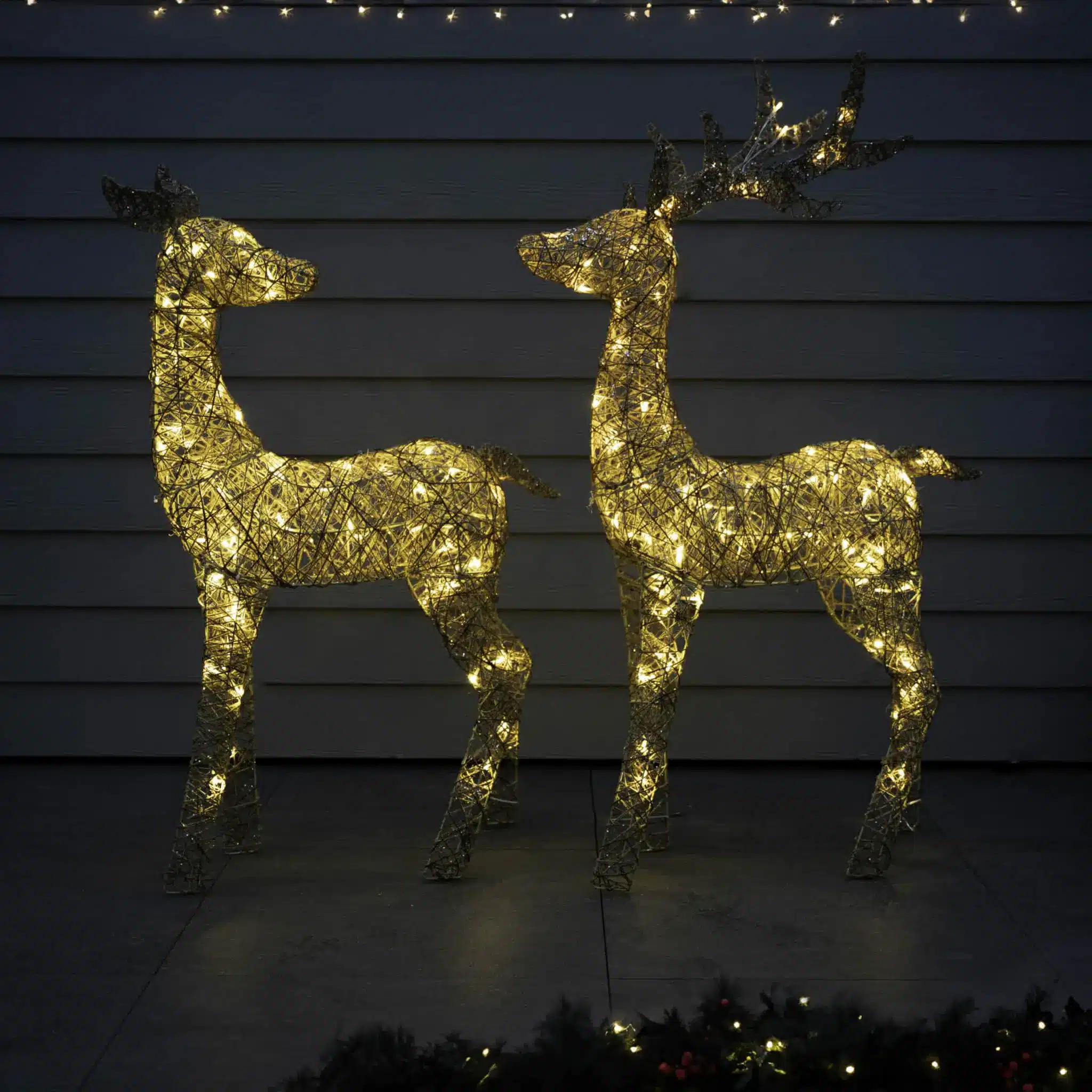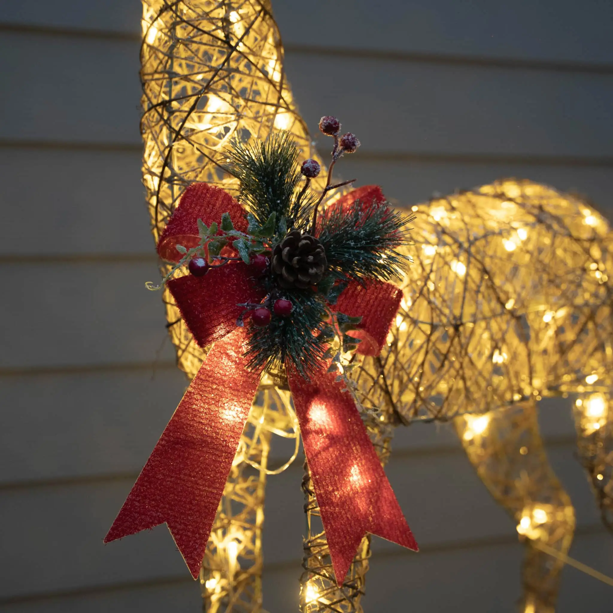 Crafted for durability and easy setup, this Gold Glitter Reindeer is a timeless addition to your holiday collection. Let the captivating blend of glittering gold and warm LED lights infuse your space with festive magic, creating cherished memories year after year.