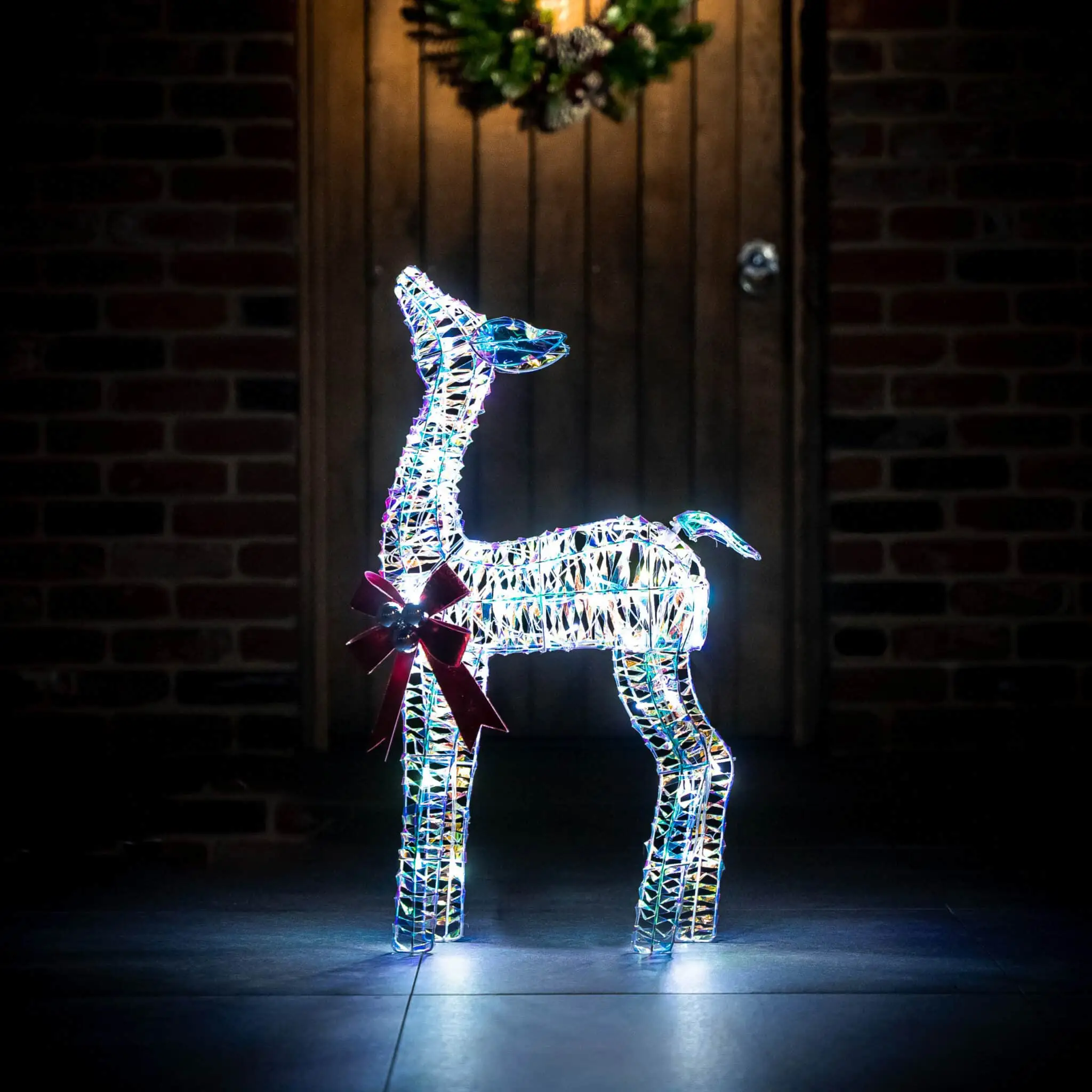 Elevate your holiday decor with the enchanting 110cm Iridescent Reindeer, adorned with 70 White LED Lights. Standing at an impressive 110cm, this radiant trio adds a touch of magic to your festive scene. The 70-embedded White Lights create a captivating glow, illuminating your space both indoors and outdoors. Crafted for durability and effortless setup, this Iridescent Reindeer brings the spirit of the season to life, making it a cherished addition to your Christmas holiday collection.