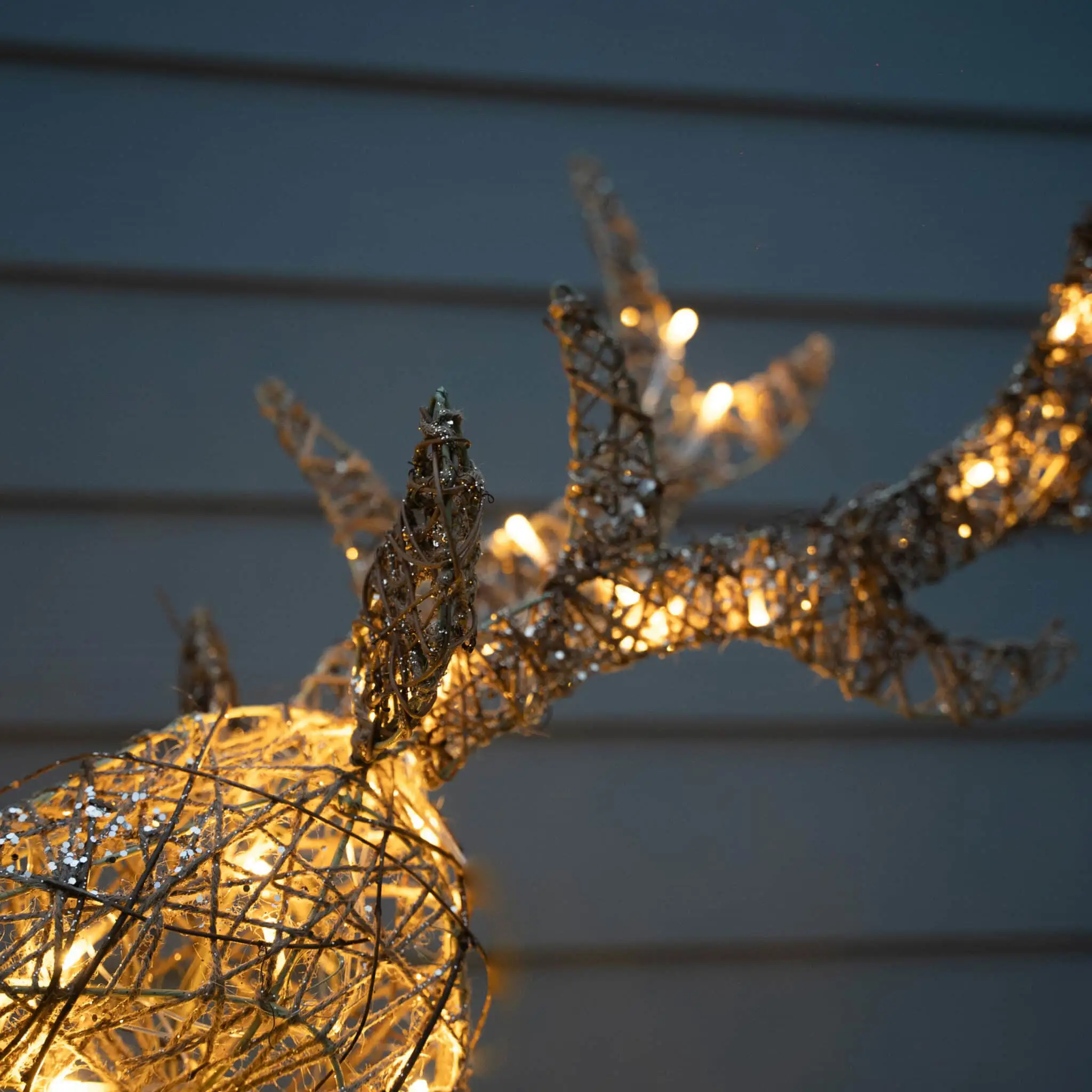 To keep your reindeer glittering, gently clean with a soft brush or cloth. Ensure it is stored in a dry area after the season.