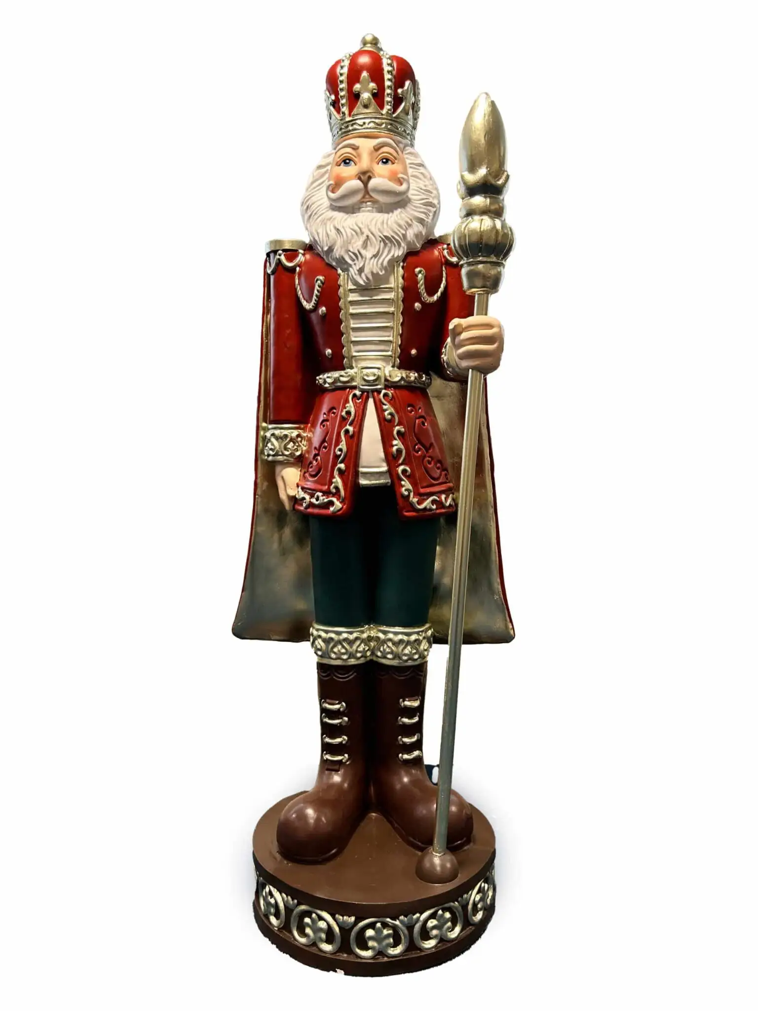 The regal 6ft Nutcracker with Sceptre – a masterpiece that commands attention in your Christmas holiday decor. Towering at 180cm, this Nutcracker is the epitome of classic charm and festive elegance. Every detail is meticulously crafted, from the intricate uniform to the majestic sceptre, capturing the essence of holiday tradition.