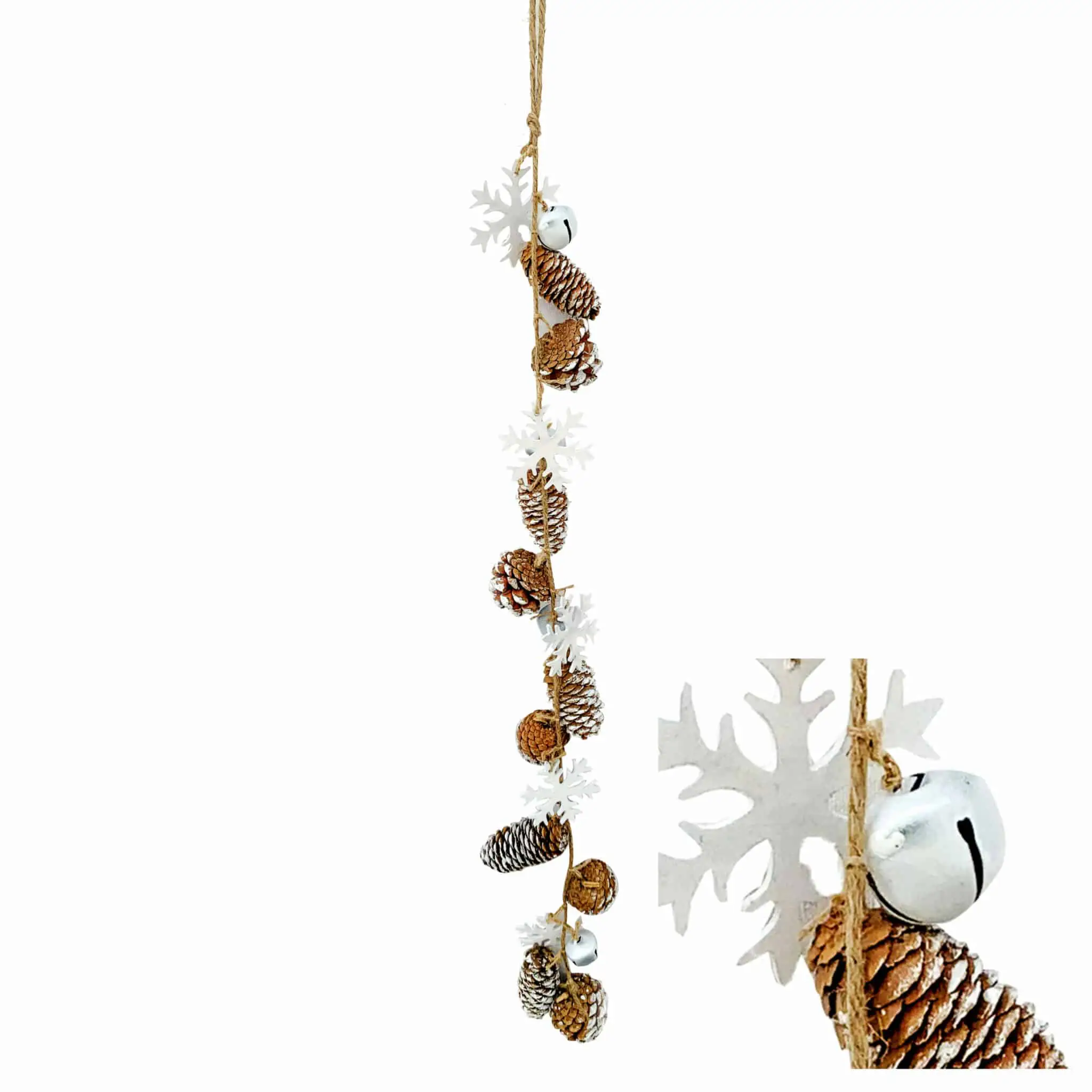 Introducing our 2.5ft Pinecone and Snowflake Garland, the embodiment of winter’s charm for your holiday decor. Carefully crafted, this garland showcases lifelike pinecones and delicate snowflakes, evoking the magic of a snowy forest.