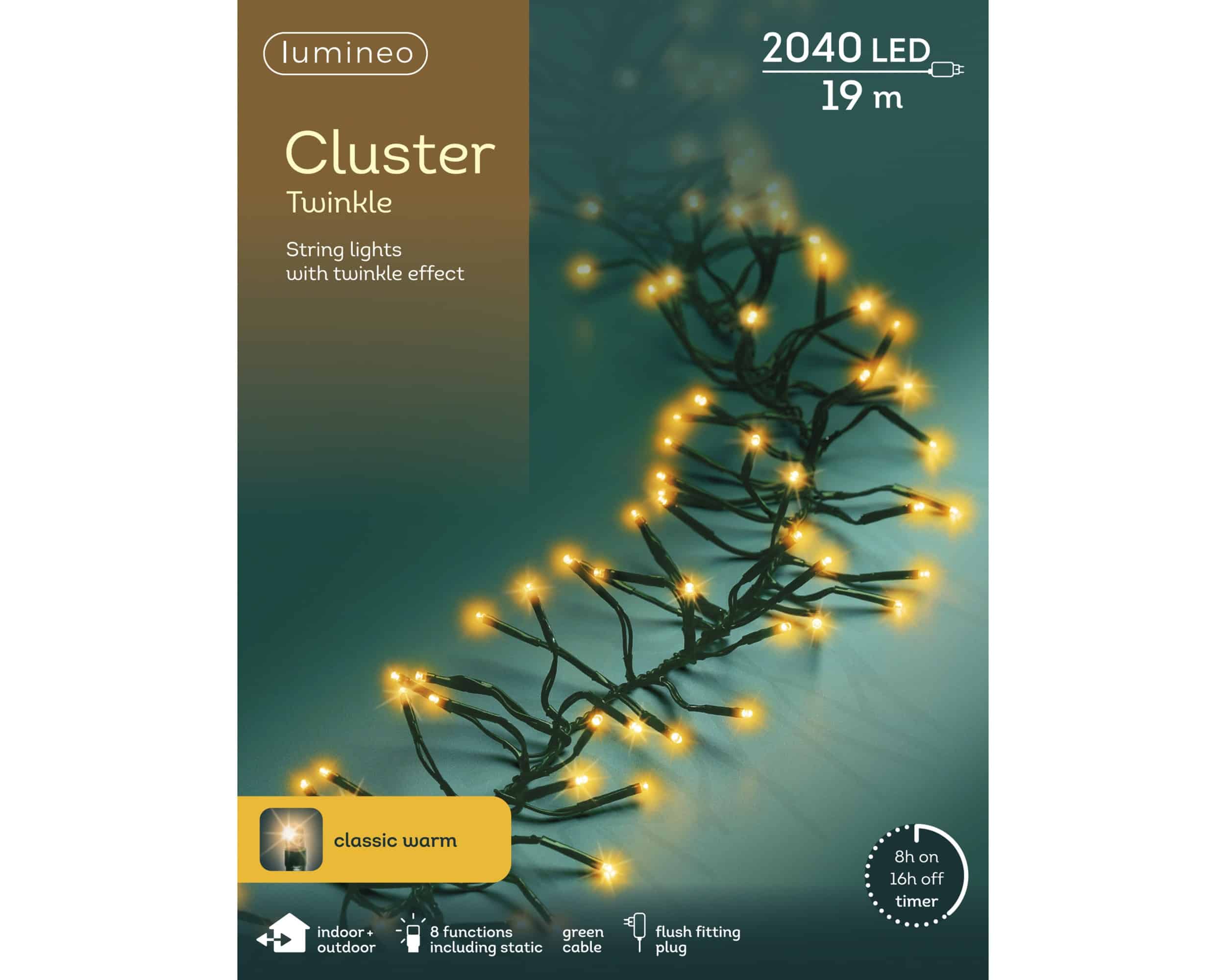 19m (2040) LED Twinkle Cluster Christmas Lights – Classic Warm