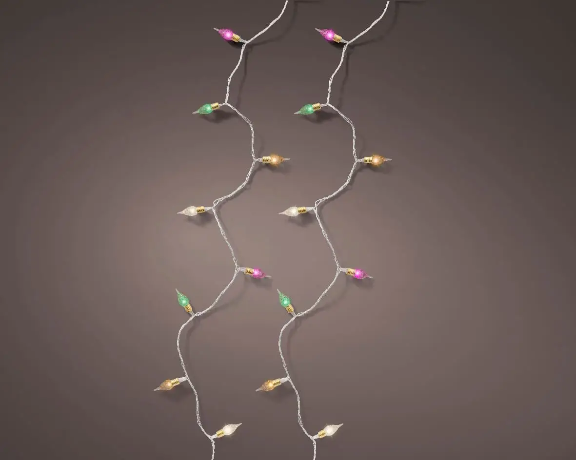 Discover our 240 LED Vintage Colorful Twinkle Lights, blending transparent, warm white, light green, classic warm, and pink tones to infuse your space with captivating, playful charm.