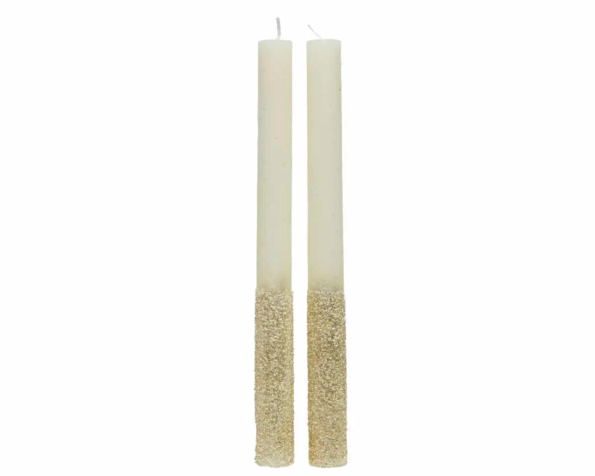 Create a cozy and traditional ambiance with the Christmas Wax Dinner Candles with metallic lacquer and glitter decoration. Perfect for festive table settings.