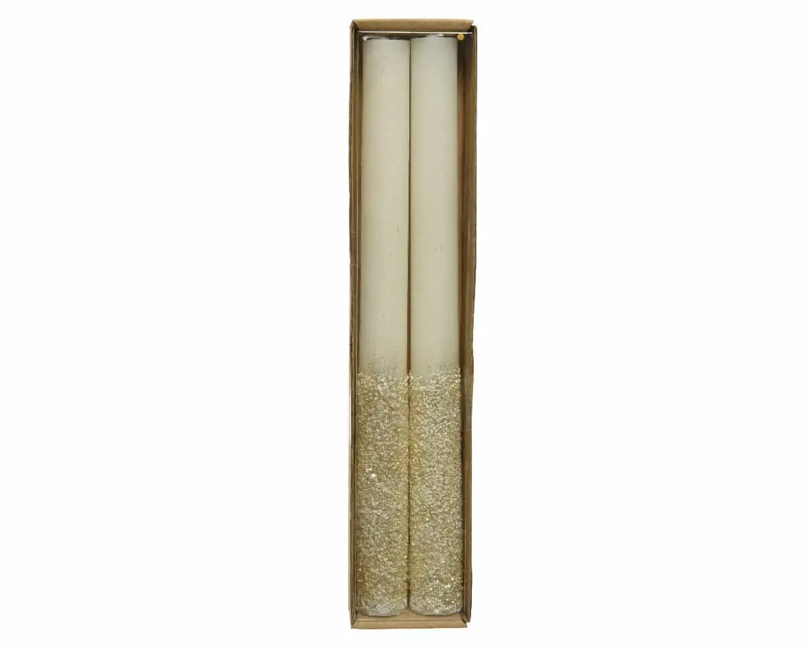 25cm Christmas Wax Dinner Candle- Metallic Lacquer, Glitter