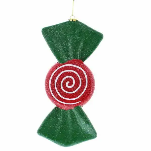 Introducing the 27cm Round Sweet with wrapper Hanging Xmas Decoration – Red & Green with glitter finish, a delightful addition to your candy-themed Christmas decor. Shaped like a toffee, this charming decoration features a swirl pattern in classic red and white, adding a playful and festive touch to your holiday setup. Made of premium polymer, it is durable and is meant to last years.