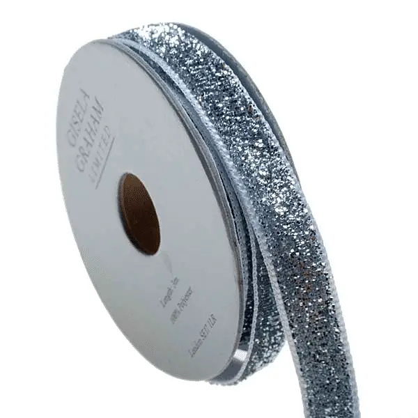 Silver Sparkle Ribbon – a shimmering accent that adds a touch of enchantment to your decorations. Perfect for crafting, gift wrapping, or embellishing, this ribbon infuses a festive sparkle that elevates any project with a touch of elegance and charm. Embrace the holiday spirit and creativity with our Silver Sparkle Ribbon.