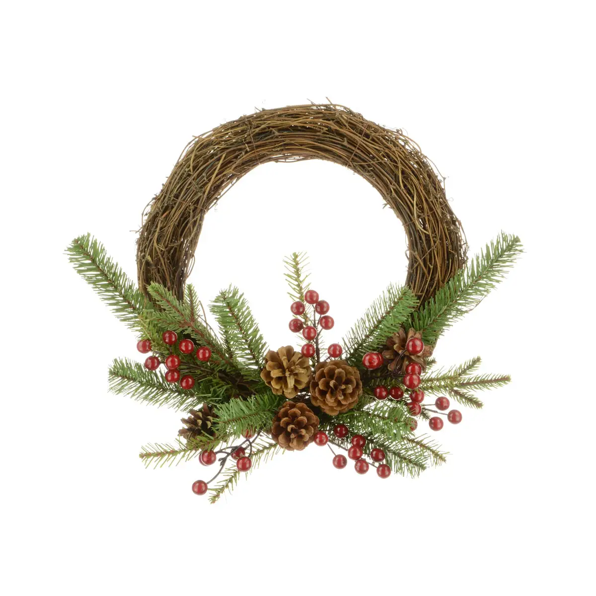 A fantastic take on the traditional style festive wreath, this Arlington natural Semi wreath comes with an assortment of leaves, pinecones, foliage and berries all on a traditional wood wicker wreath. This wreath brings a beautiful traditional touch to your door and is perfect for your decorations if you like the natural touch.