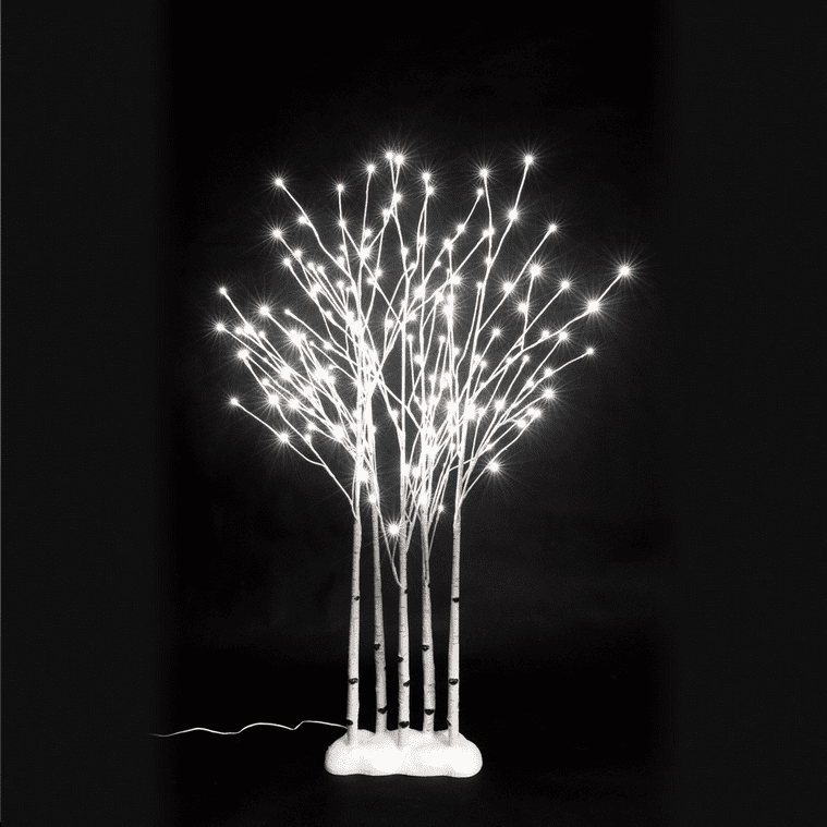 Presenting a breathtaking ensemble of five 132-cm birch trees, each adorned with a dazzling array of 175 cool white LED lights. This stunning set is the perfect addition to adorn your mantelpiece, shelves, or windowsill, infusing your space with the spirit of the season.