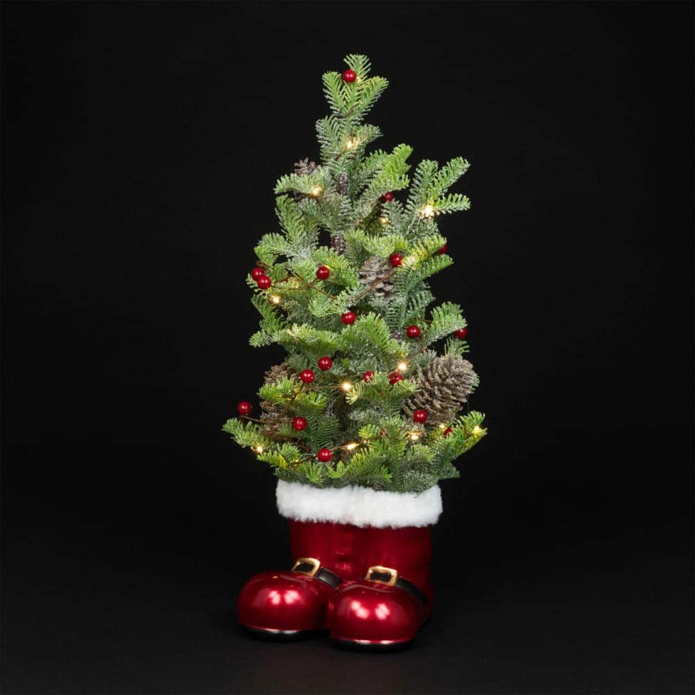 Decorate your dinging table with this 60cm Santa Boots tabletop Pre lit small artificial Christmas tree. This tree is already decorated with red berries and pine cones. Also, perfect for corners, under the tree, hallways, or kids’ rooms, this compact tree adds seasonal charm where larger trees won’t fit.