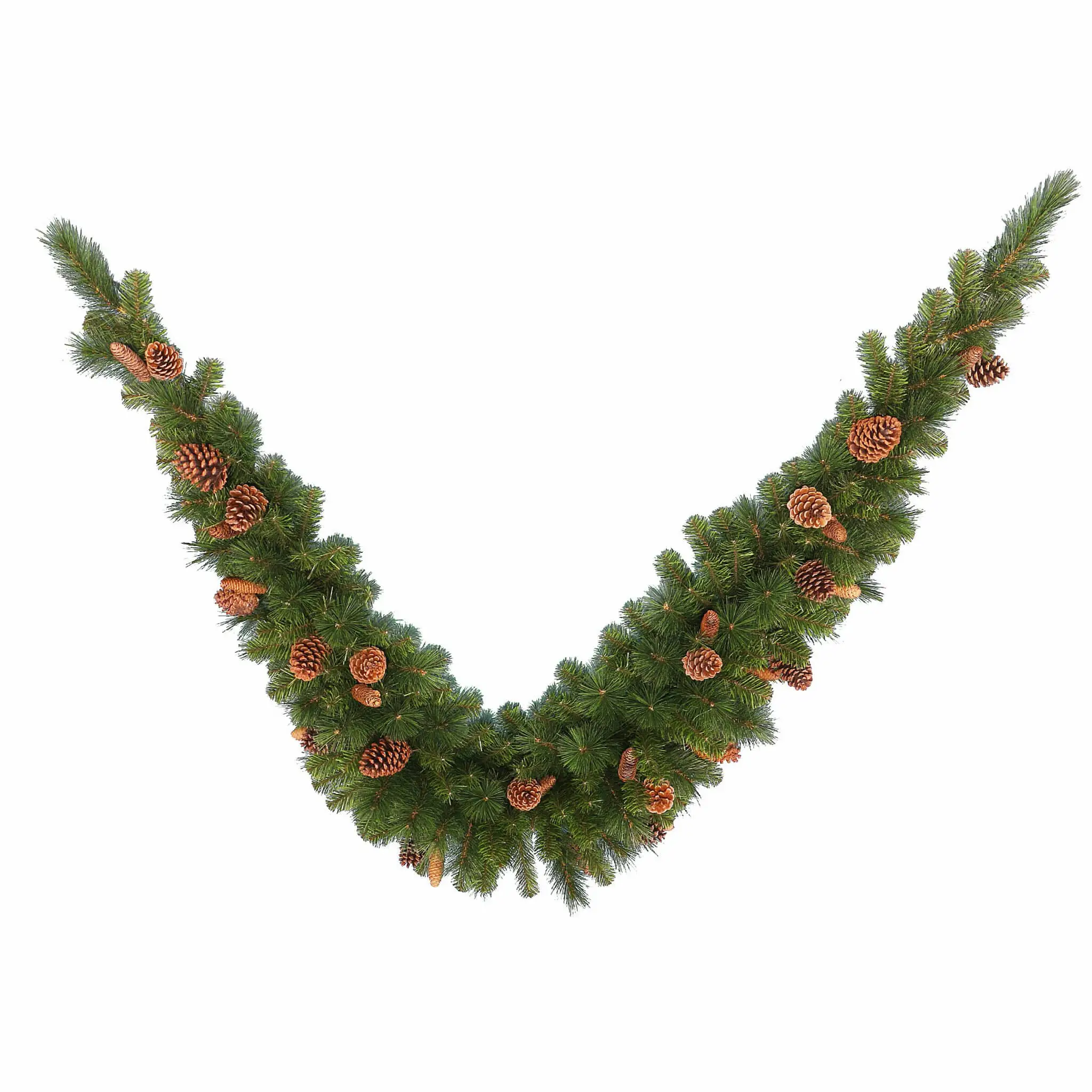 An astoundingly realistic Pine Ridge Mantle Swag. This beautiful Christmas decoration piece is a superb addition to your Christmas collection. It features exceptionally realistic branch tips. This Pine Swag also comes with impressively detailed pine cones for superb realism. Place it on your shelves, drape it over doorways, or set it as a wonderful table piece. This swag is a must for your Christmas decoration ensemble.
