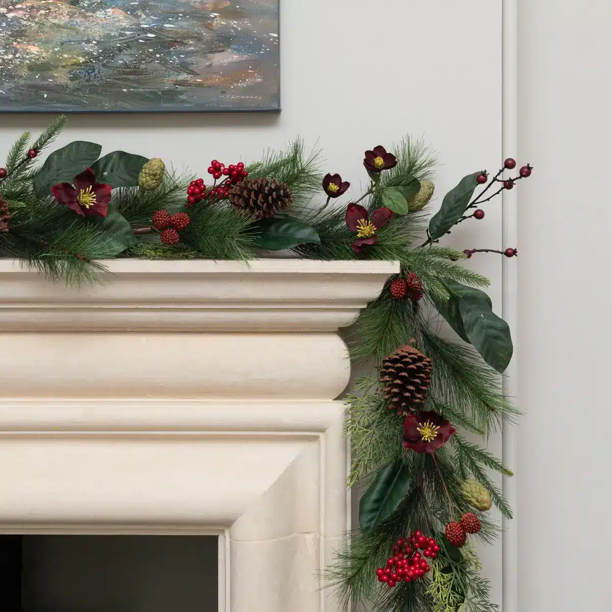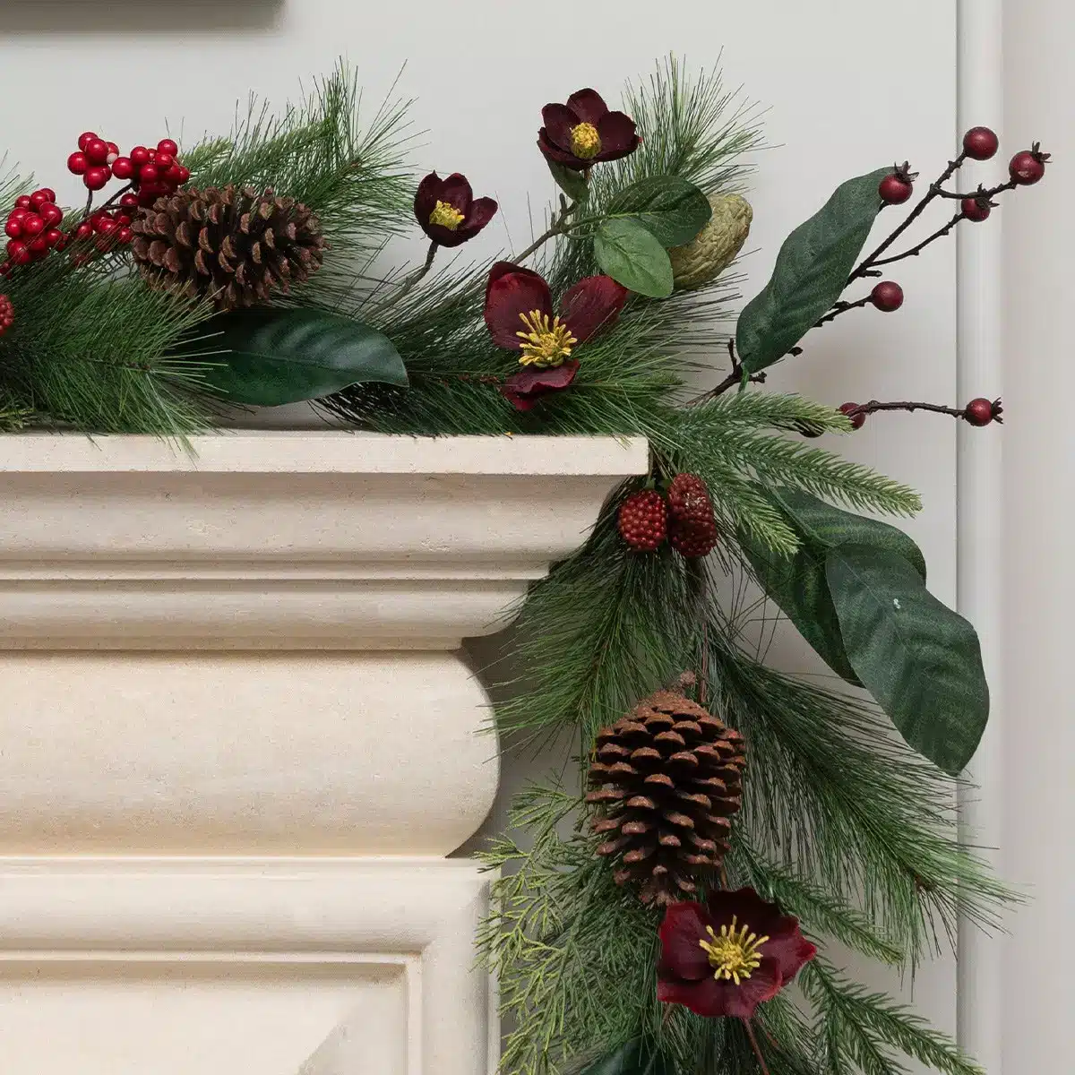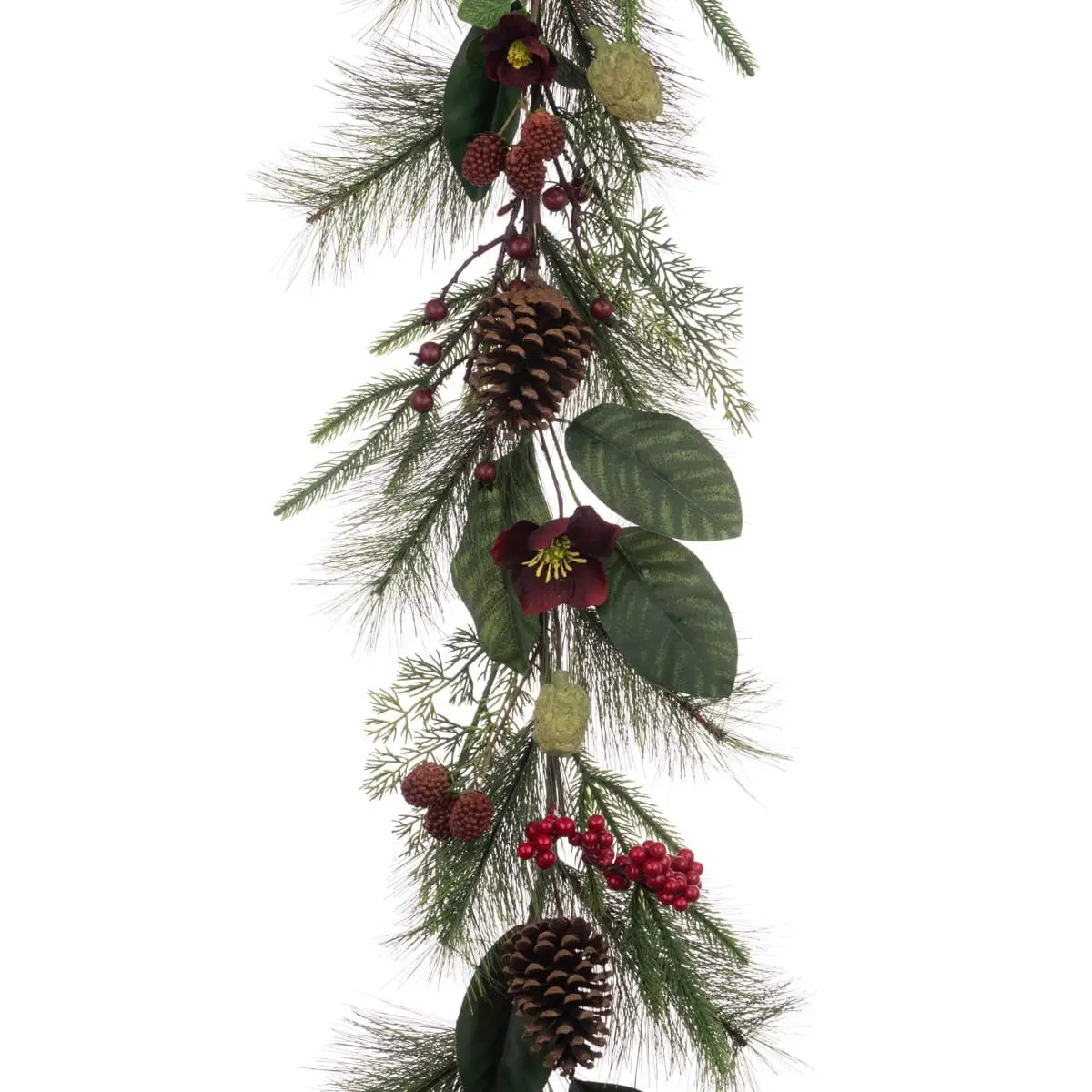6ft Rippingale Garland with Mixed Leaves Cones and Red Berries