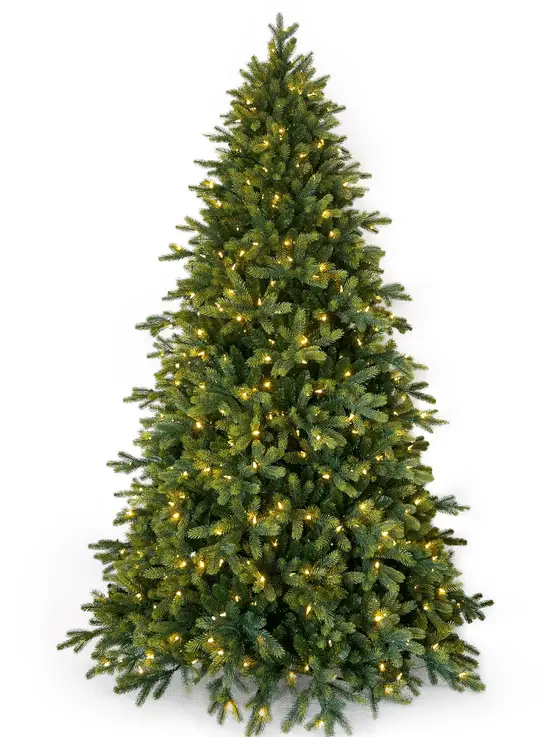 Setting up and storing this tree is a breeze, thanks to its unique hinged construction. The Cumberland Fir 7.5-foot tree with LED lights offers both style and durability, making it the perfect choice for your holiday celebrations. Plus, it’s made from flame-resistant PVC and is hypoallergenic without compromising that “Real Feel” quality. Make this Christmas a memorable one with the Cumberland Fir.