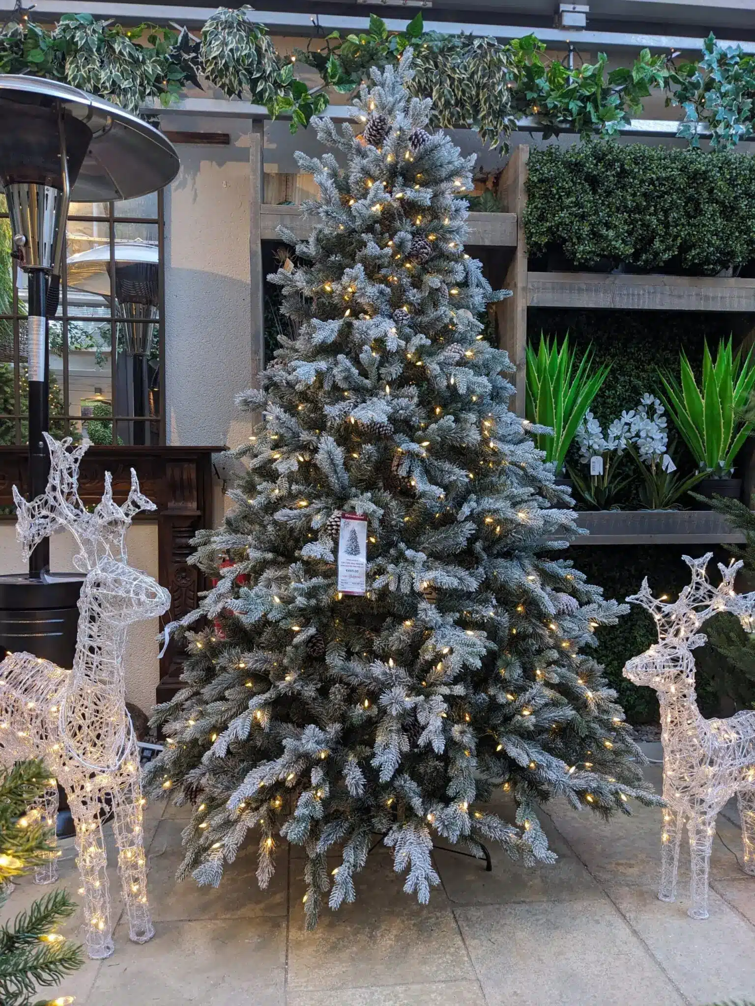 Introducing the 7.5ft Frosted Boston Fir Pre-Lit Artificial Christmas Tree, designed to bring the magic of the Christmas season into your home. This tree, with its realistic two-tone appearance, looks as if it’s been freshly cut from the forest, making it an essential centerpiece for Christmas 2025.