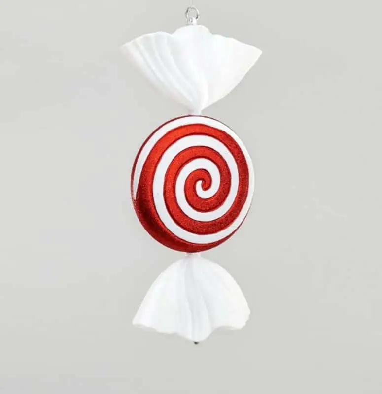 A wonderful ornament for your Christmas tree. This Candy Cane styled sweet decoration is decorated with a distinctive red and white swirl.