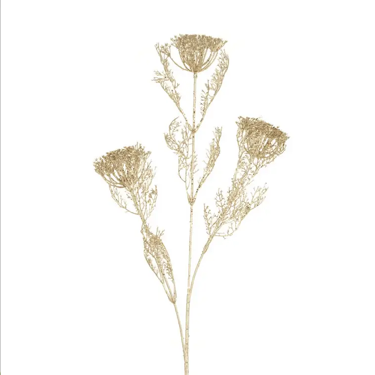 Transform your home this Christmas with this delightful spray. Adorned with wonderfully realistic dill flowers, each branch and long stem is intricately detailed and coated with a champagne-coloured glitter finish. Ideal for placing in vases, pots, cups, and more, this spray adds a perfect touch of festive decoration.
