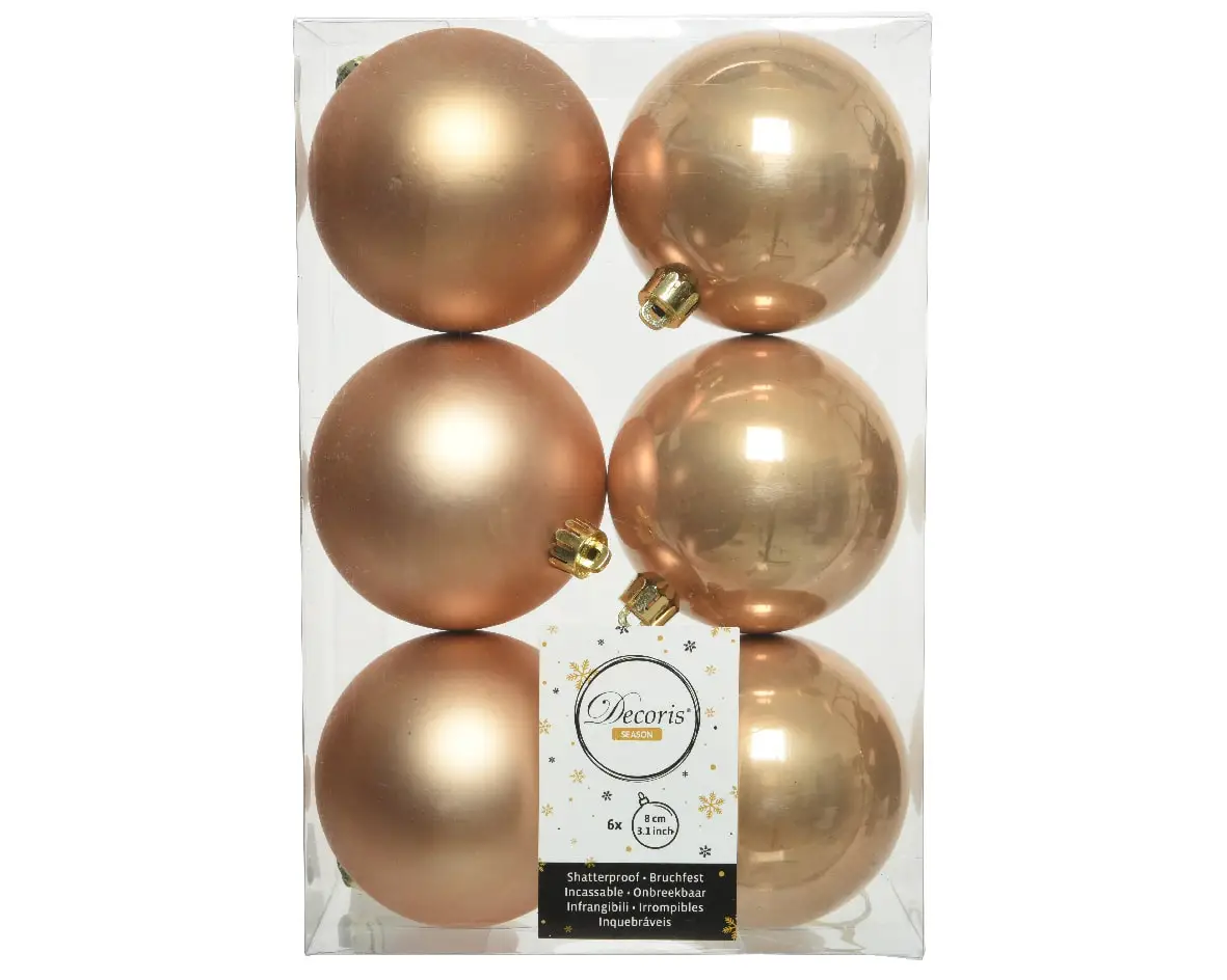 Make a statement this year with these inviting Butterscotch-colored baubles. Measuring a generous 8 cm, these shatterproof ornaments can enhance your tree decor or become a key element in your personalized festive creations.