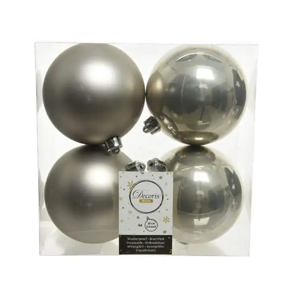 Christmas Baubles Misty Grey (Dia 10cm, Pack of 4)