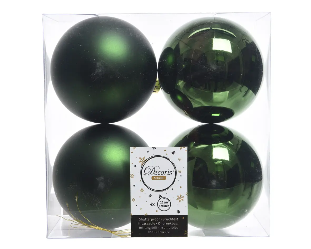 10cm Pine Green Christmas Baubles (Pack of 4)