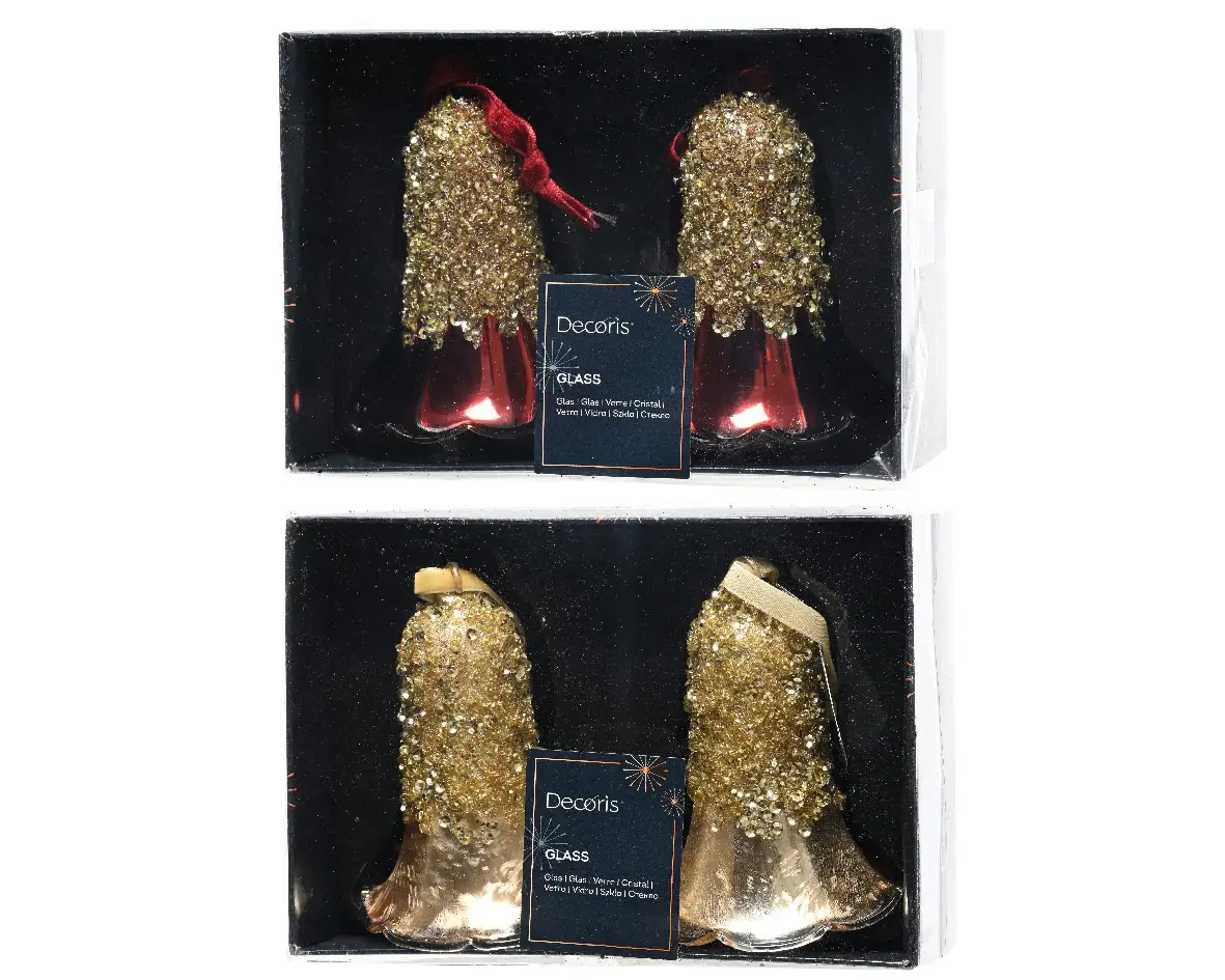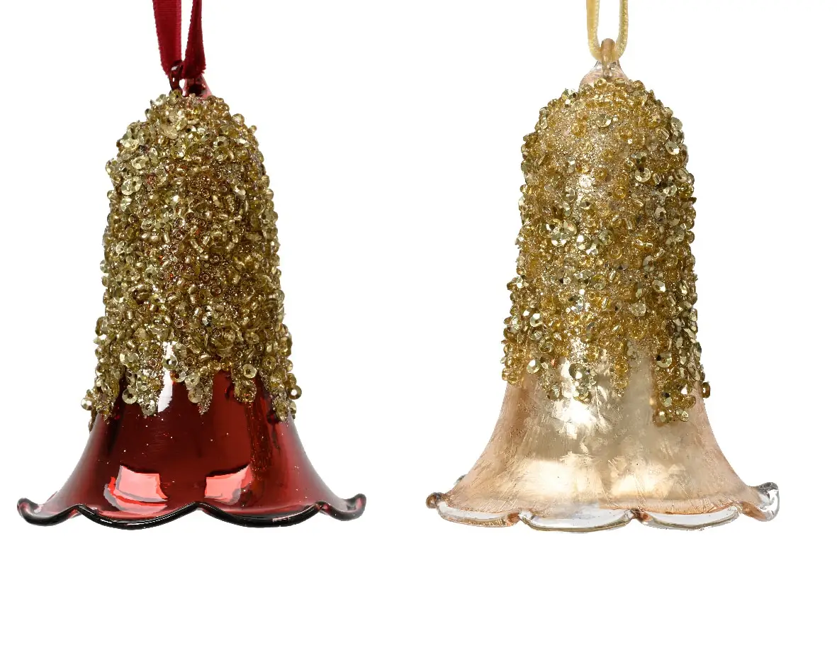 Glass Christmas Bells – Red and Gold – In Shop Only
