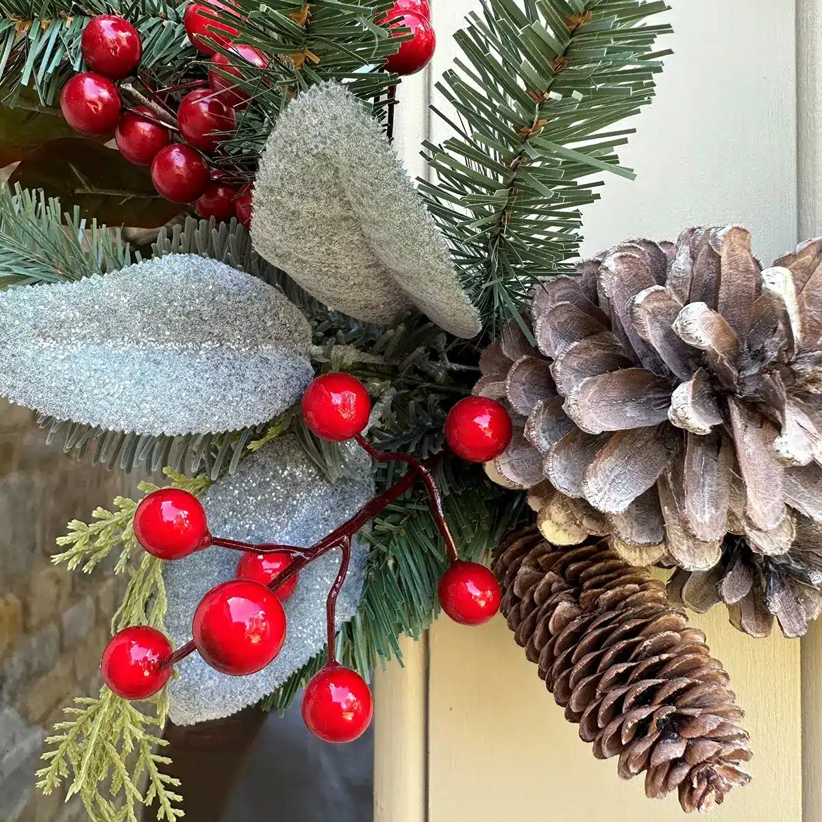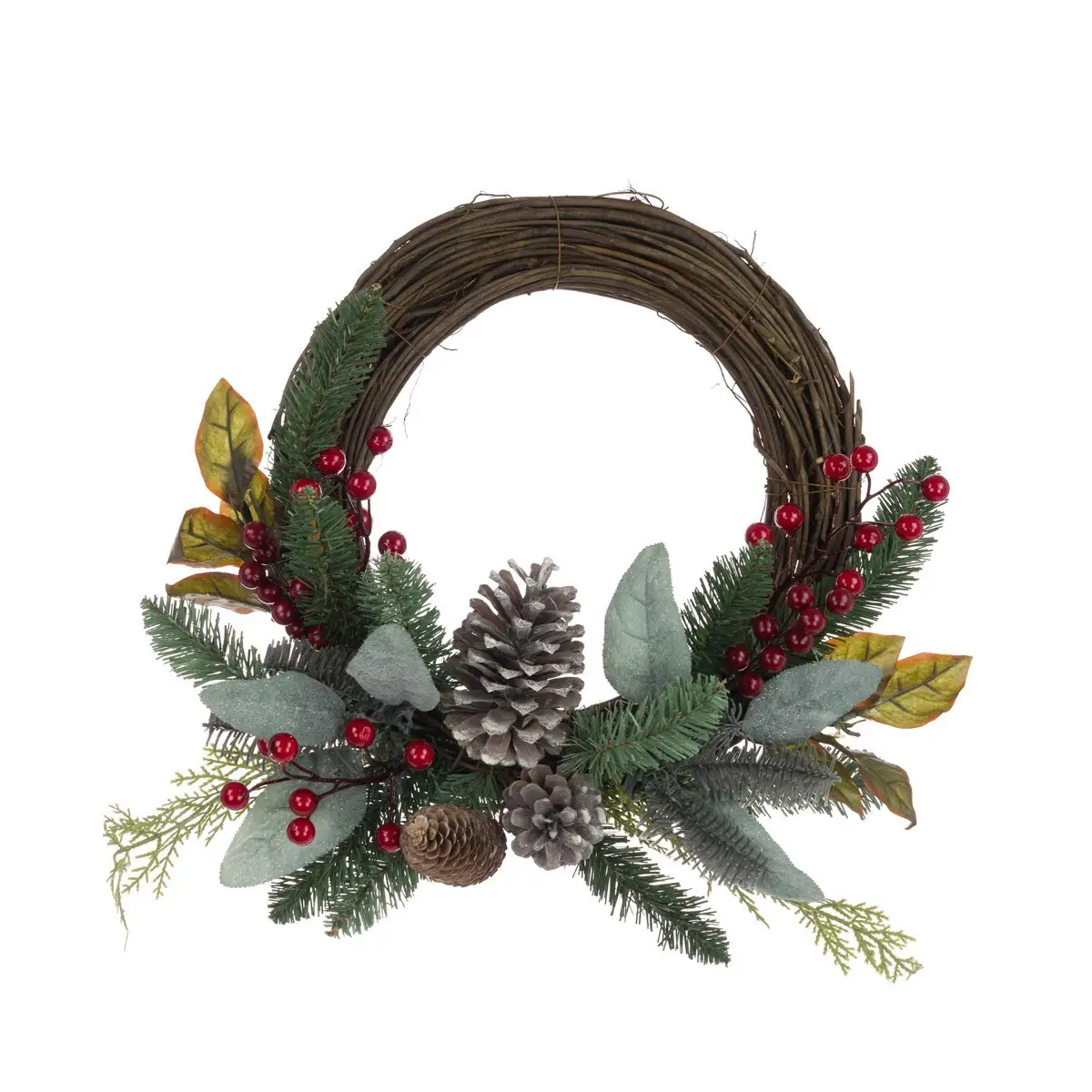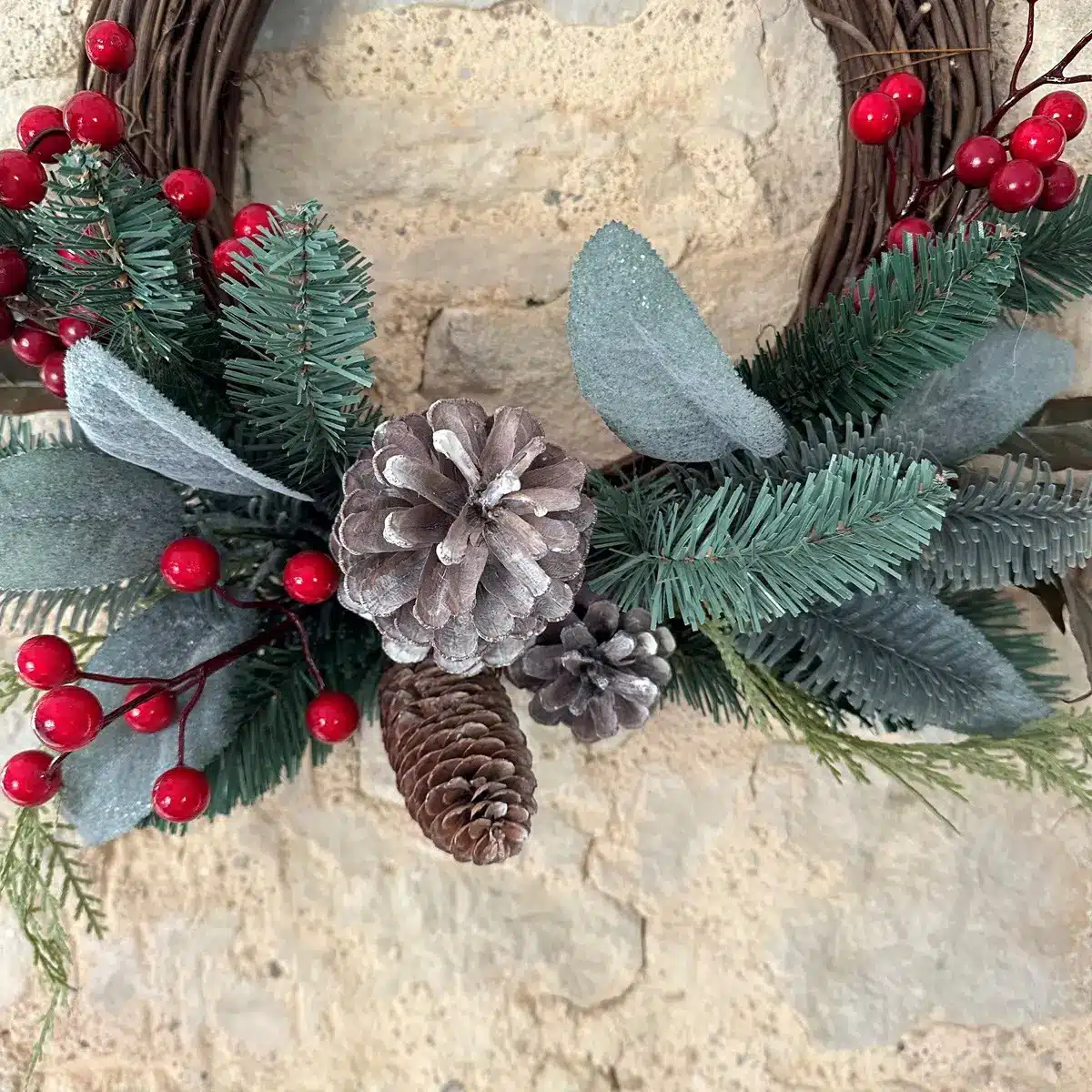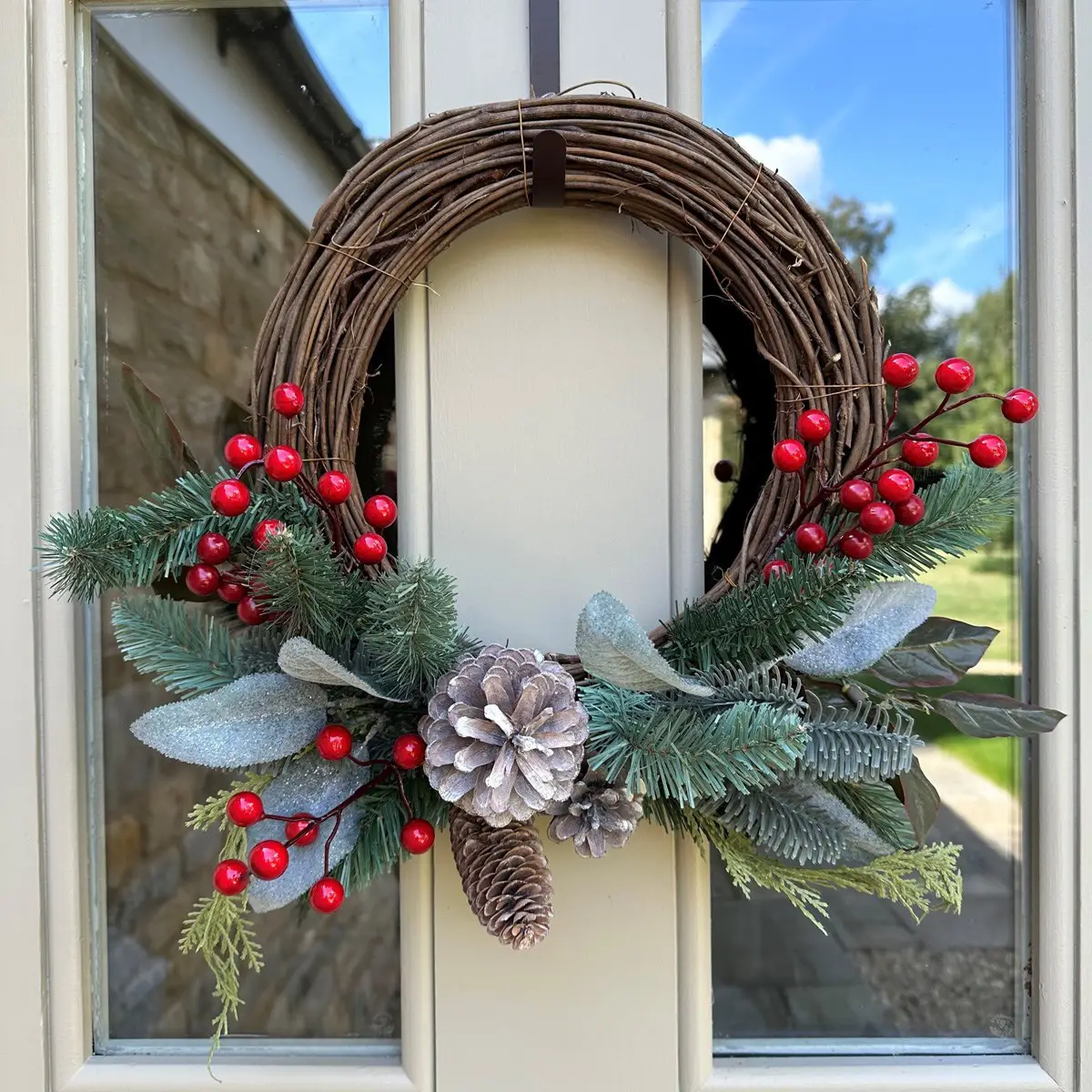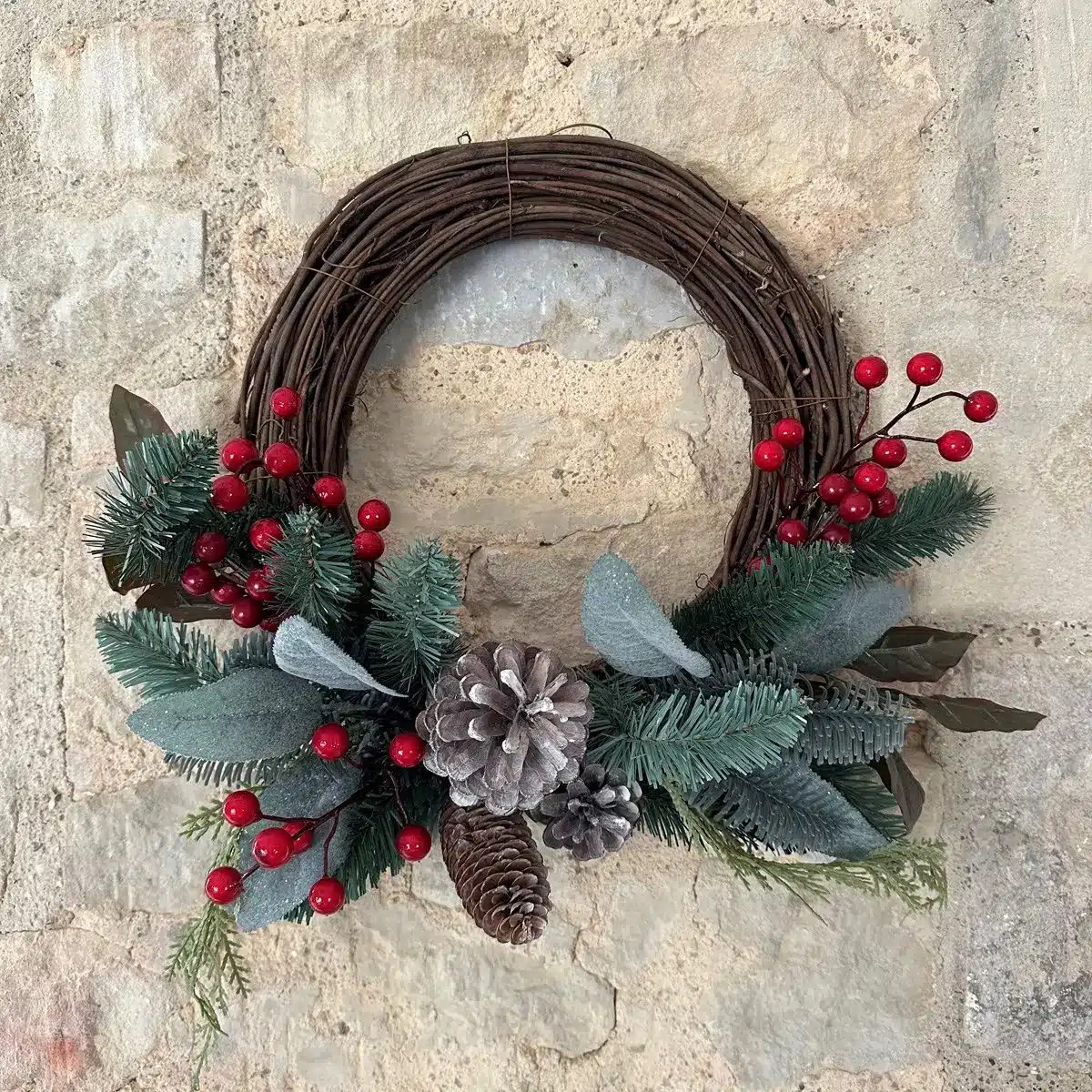 A fantastic traditional style festive wreath, this Hawes Berry Rattan wreath comes with an assortment of leaves, pinecones, and berries all on a traditional wood wicker wreath. This wreath brings a beautiful traditional touch to your door and is perfect for your decorations if you like the natural touch.