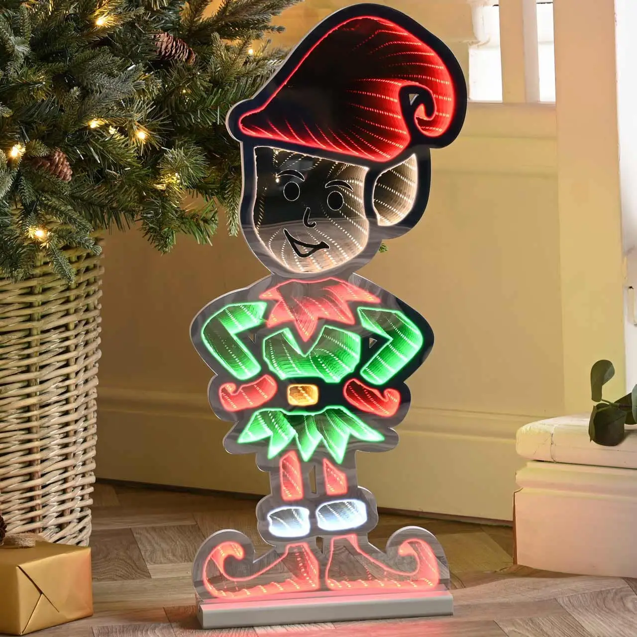 This festive season, welcome the delightful charm of the Infinity Light Standing Elf to your Xmas decoration. With a captivating mirror effect and vibrant SMD lights, this elf brings a unique 360-degree light display, creating a one-of-a-kind visual experience that’s perfect for any indoor Christmas setting.