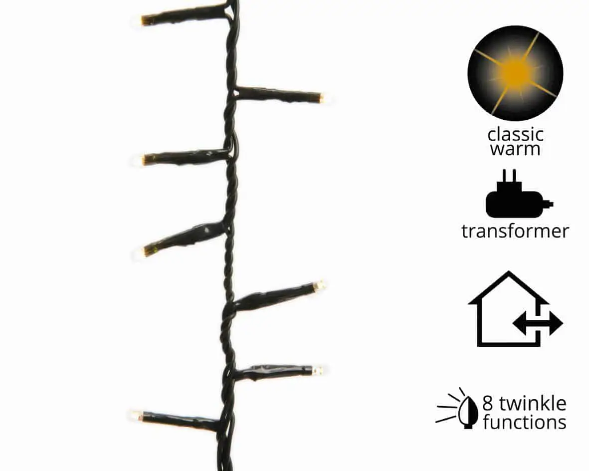 The Compact Twinkle Lights have eight various twinkling functions, including steady on. The eight-hour timer memory features mean that there is no resetting each time the lights are turned on, and you save power when the lights automatically turn off for the night.