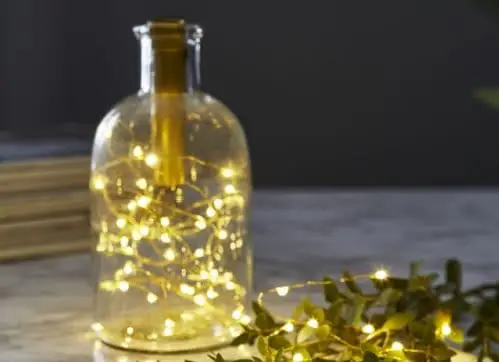 For a unique DIY Christmas Light decoration. Simply take an empty wine or spirits bottle, clean, and add in these lights.