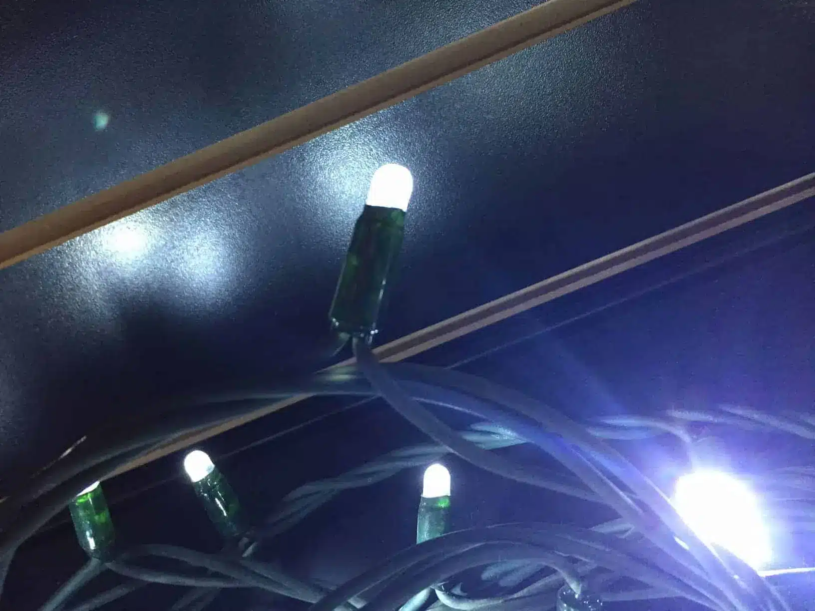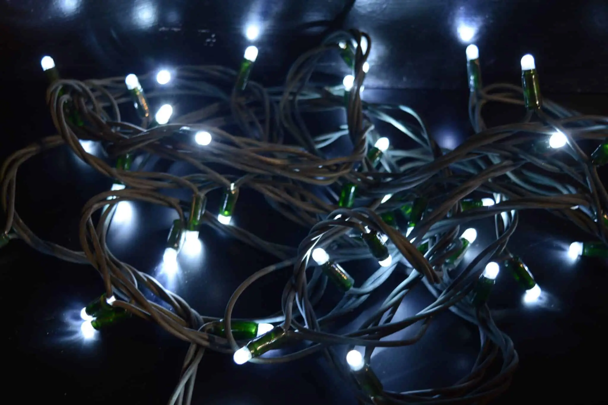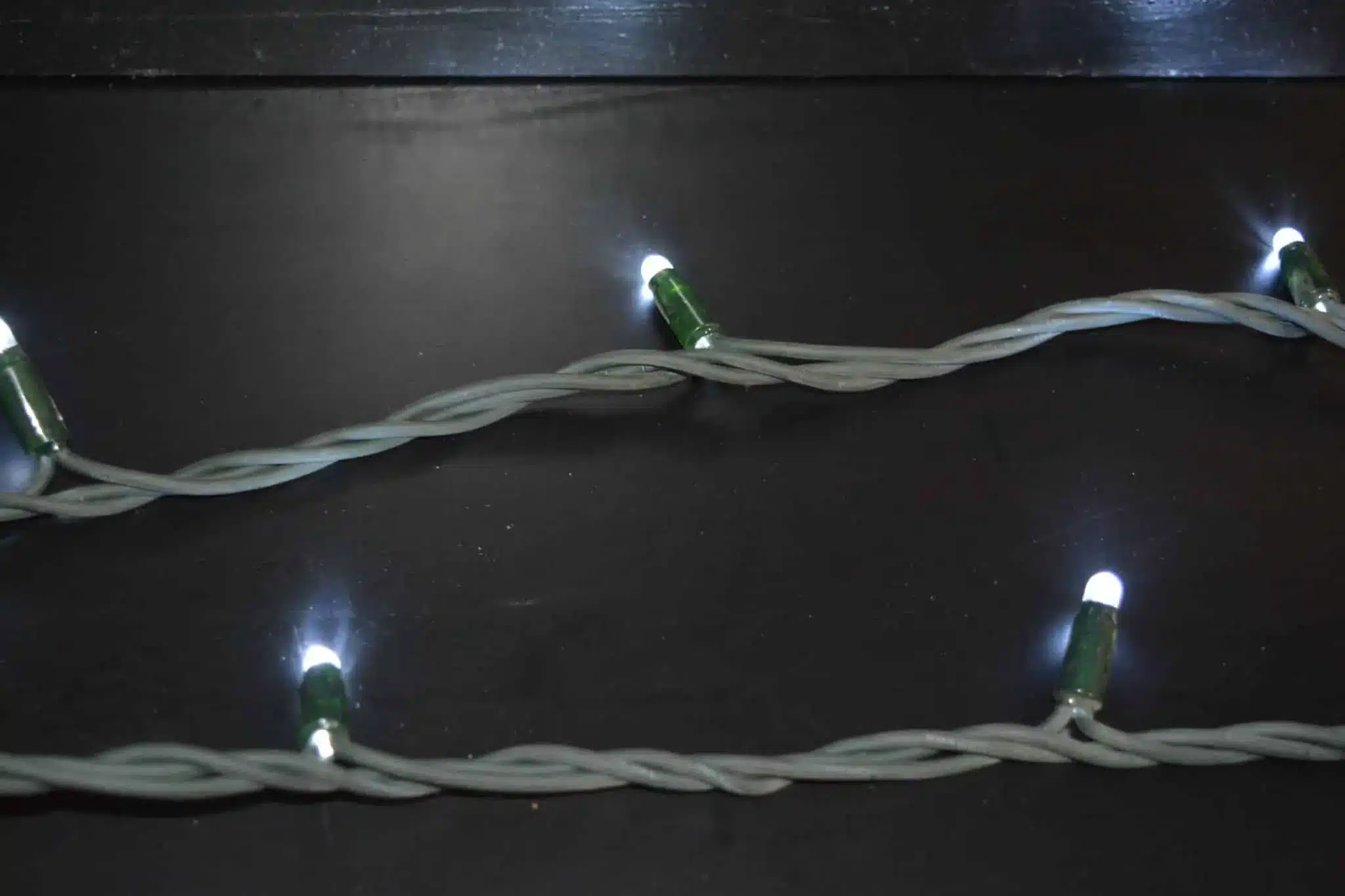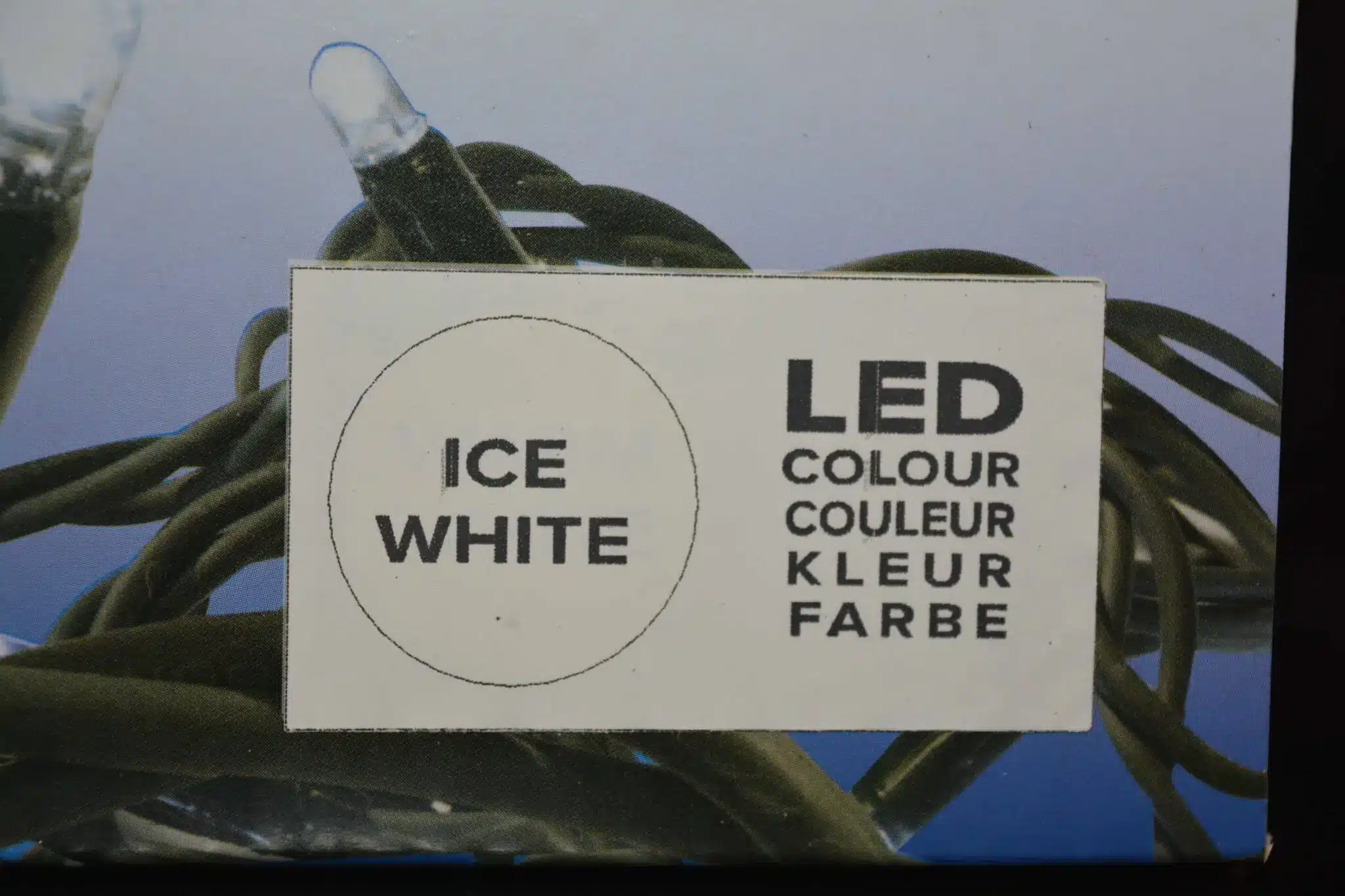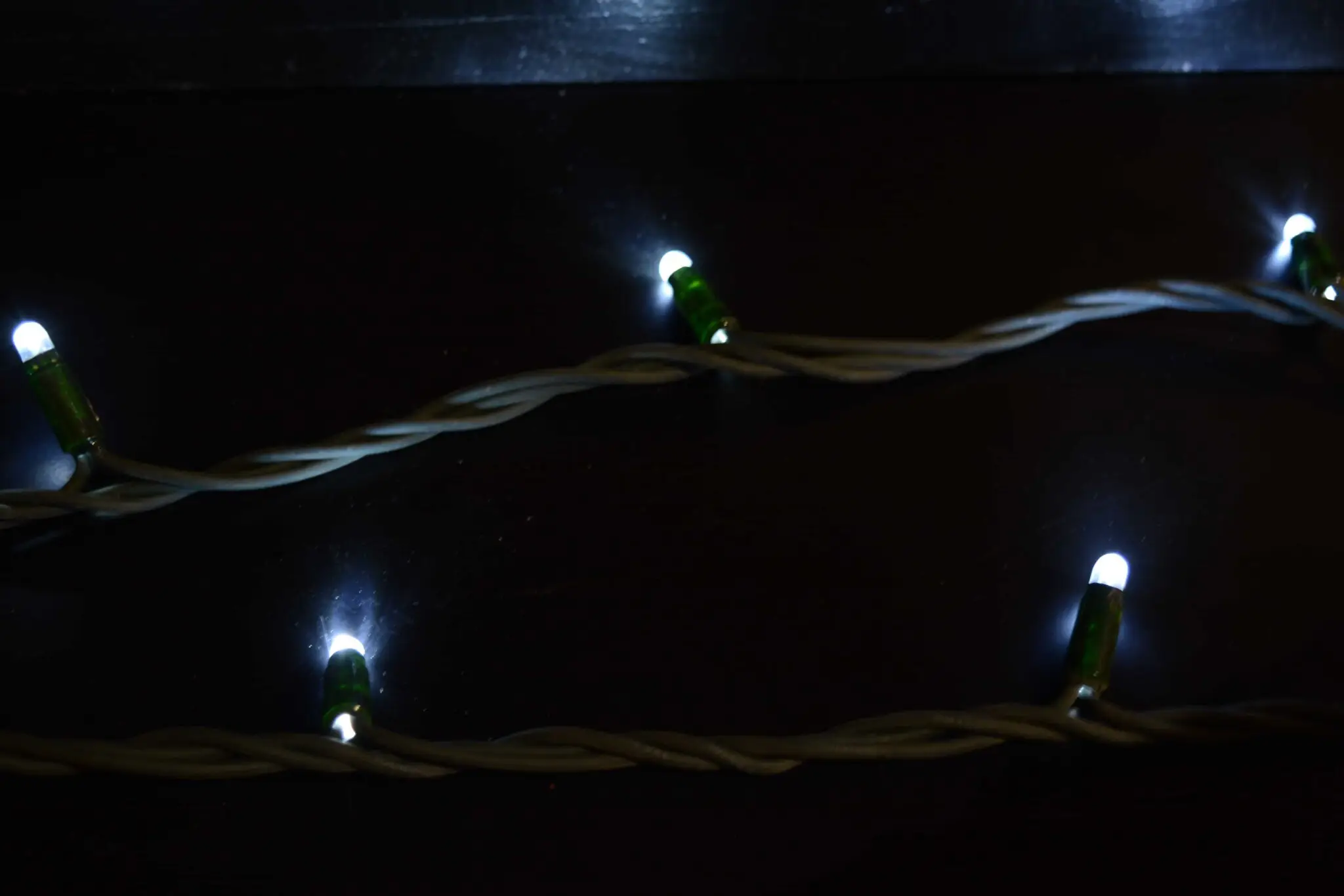 - 10m string of 100 Ice White LED lights on green cable x 1