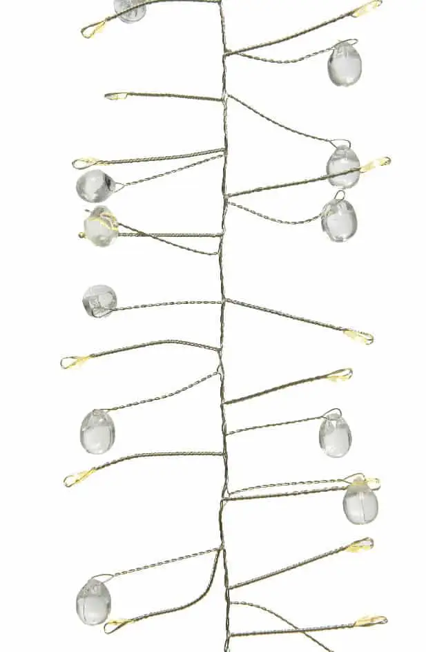 Make your tree shine with Cluster Christmas Lights with Decorative Diamonds. This set includes 100 energy efficient micro LED bulbs decorated alongside decorative diamonds. This durable garland is perfect for trees, shelves and can be placed wherever you please. This Christmas Light set requires 3xAAA batteries (Not included).