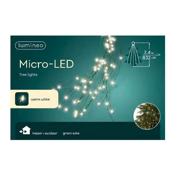 832 Bunch Micro-LED Christmas Tree Lights with Green Cable Warm White
