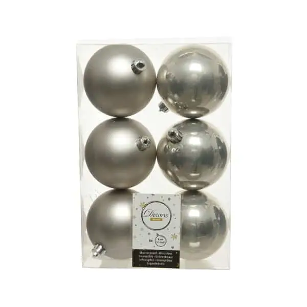 Misty Grey Shatterproof Christmas Baubles (Pack Of Six)