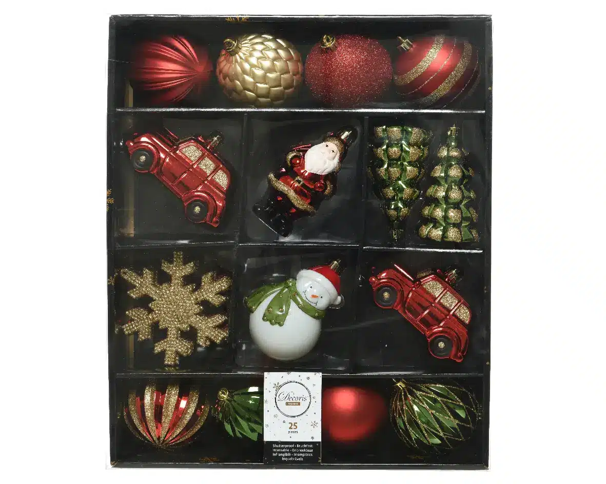 A brilliant way to start decorating your Christmas tree, this Mixed Christmas Bauble Box gives a variety of different baubles and other Christmas decorations like Santas, snowflakes, Christmas trees, and cars. Featuring exceptional quality material and shatterproof construction, the shatterproof Christmas tree ornaments are ideal for families with children and pets. They are packaged in a box that is lightweight and durable, so you can easily store and keep the ornaments safe for years to come. These Christmas decorations are a brilliant way to start decorating your Christmas Tree.