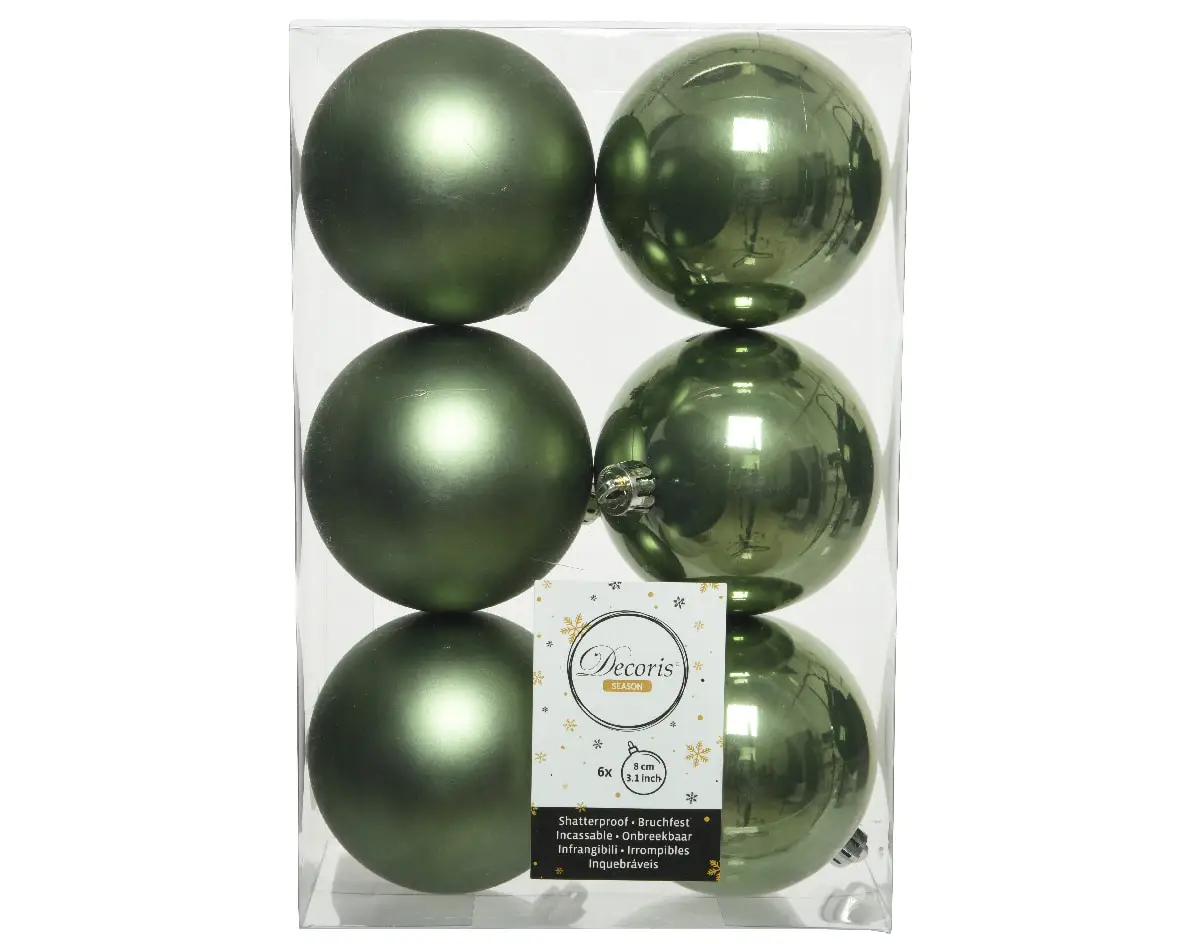 Christmas Baubles Moss Green (Dia 8cm, Pack of 6)
