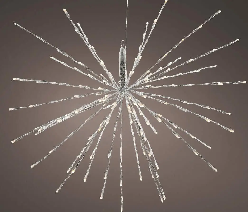 Make your Christmas sparkle with this remarkable polestar. Featuring unique strands that twinkle, you can hang this star up from the ceiling with the included hanger. The Polestar includes long-lasting LED Lightbulbs.