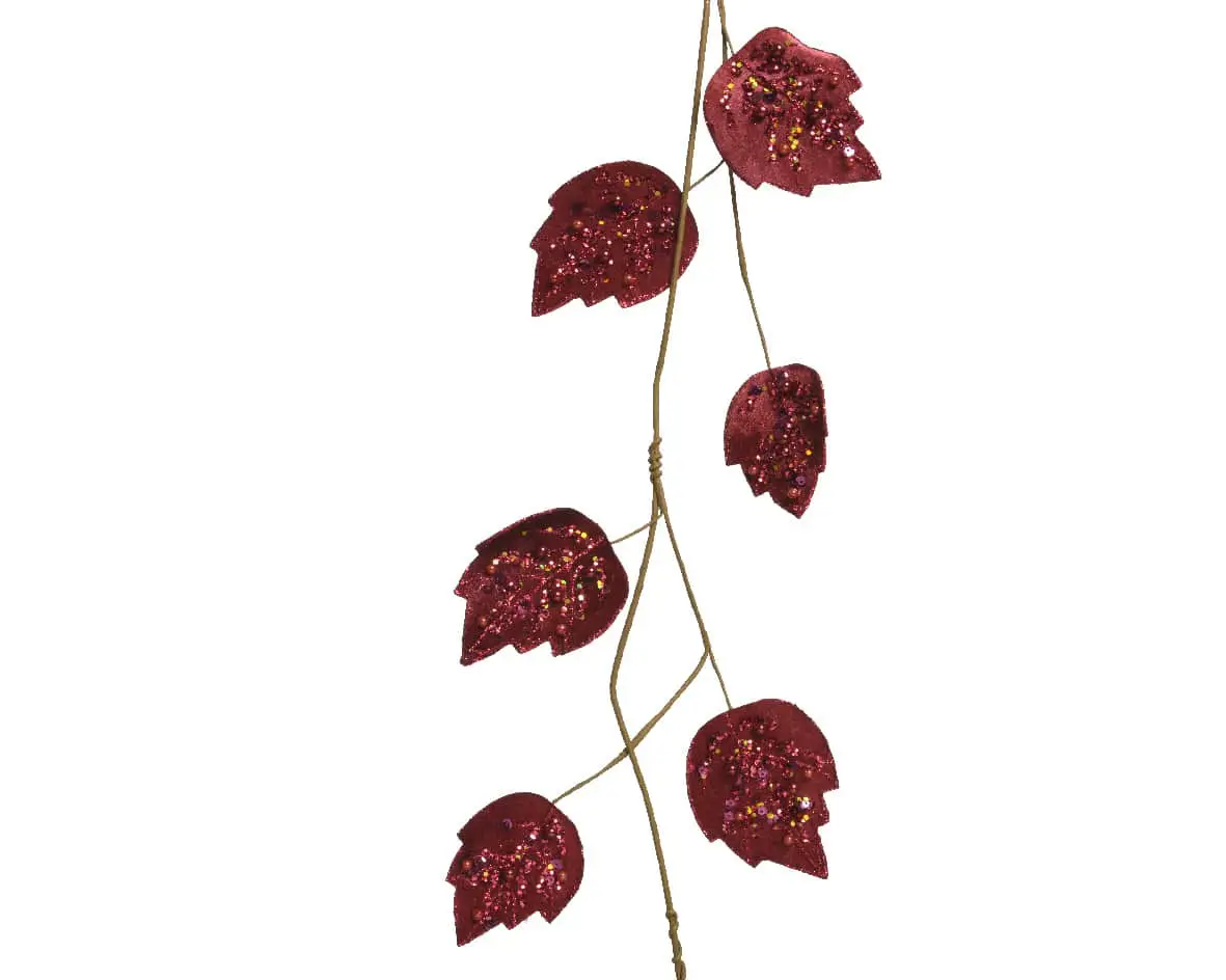 3ft Red Leaf Velvet and Glitter Christmas Garland