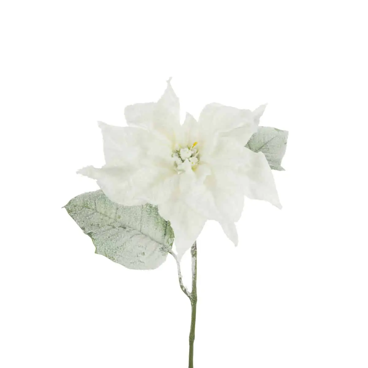 A wonderfully detailed poinsettia. This flower comes with incredible detail between the head, centre and frost tipped leaves. All with a wonderful wintry finish. This flower is perfect for decorating Christmas displays and looks great with cool hued tones.