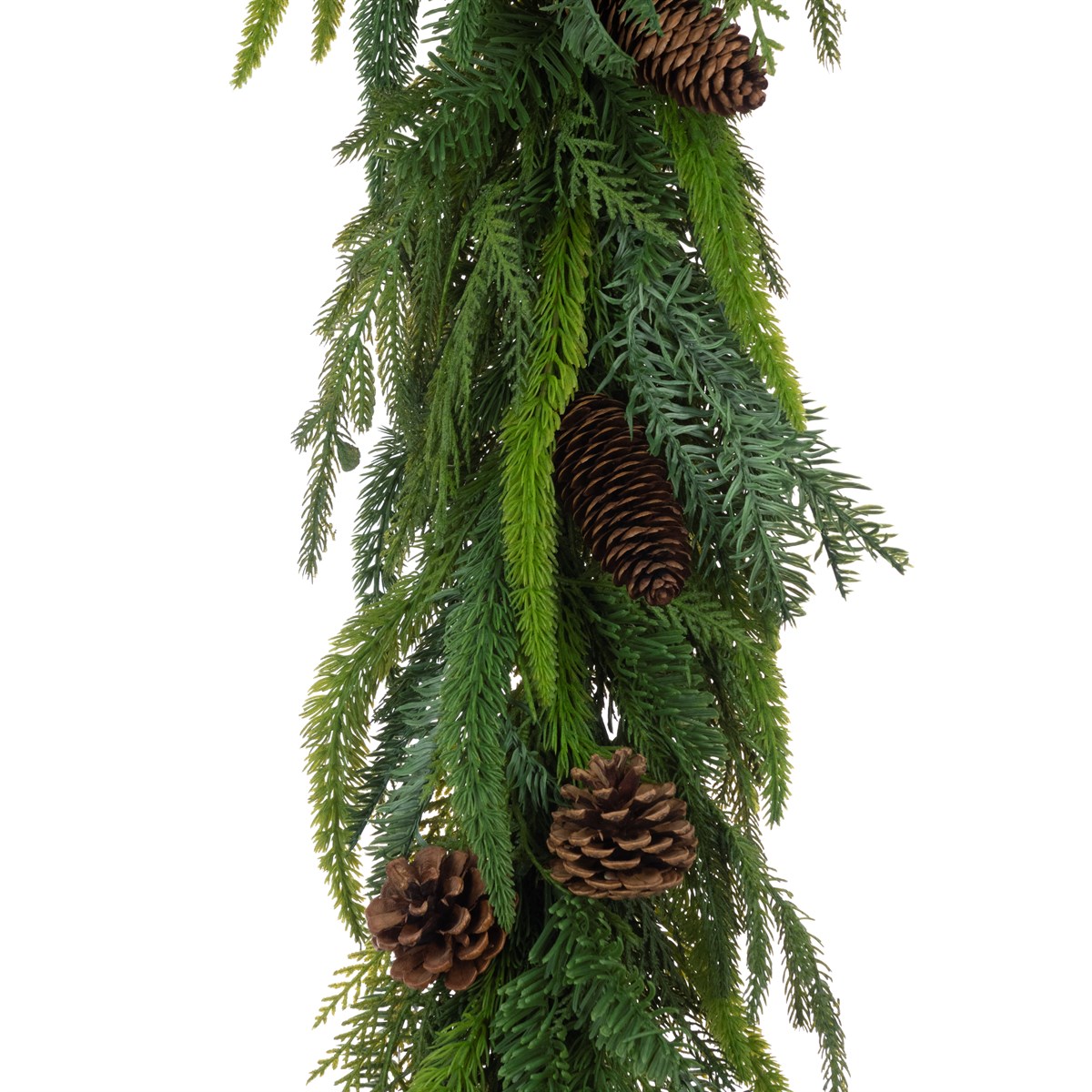 6ft UV Deluxe Cedar & Pine Garland with Pine cones and Mixed leaves