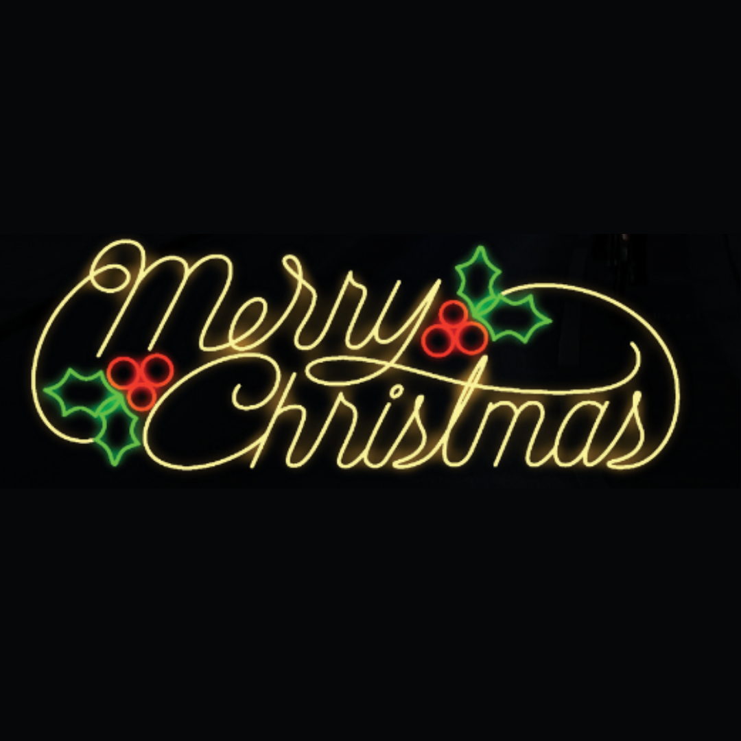 Vibrant Festive DesignThe sign is created with warm white rope lights for the lettering, while red and green LEDs highlight the frame and decorations. This combination ensures the message stands out with comfort to your eyes at night. At 160cm wide and 57cm high, it’s large enough to catch attention yet compact enough for easy placement.